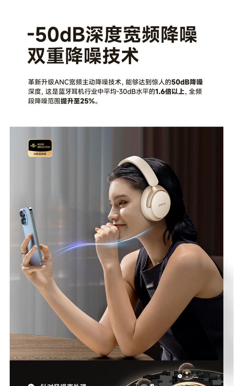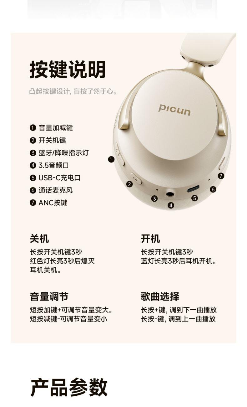 • picun品存头戴式耳机NC60Pro日光白