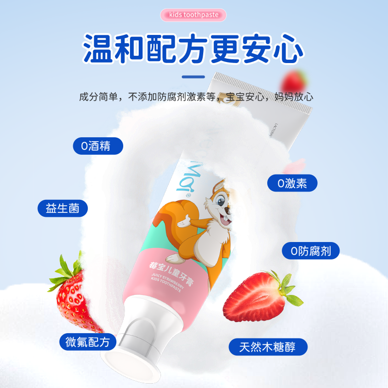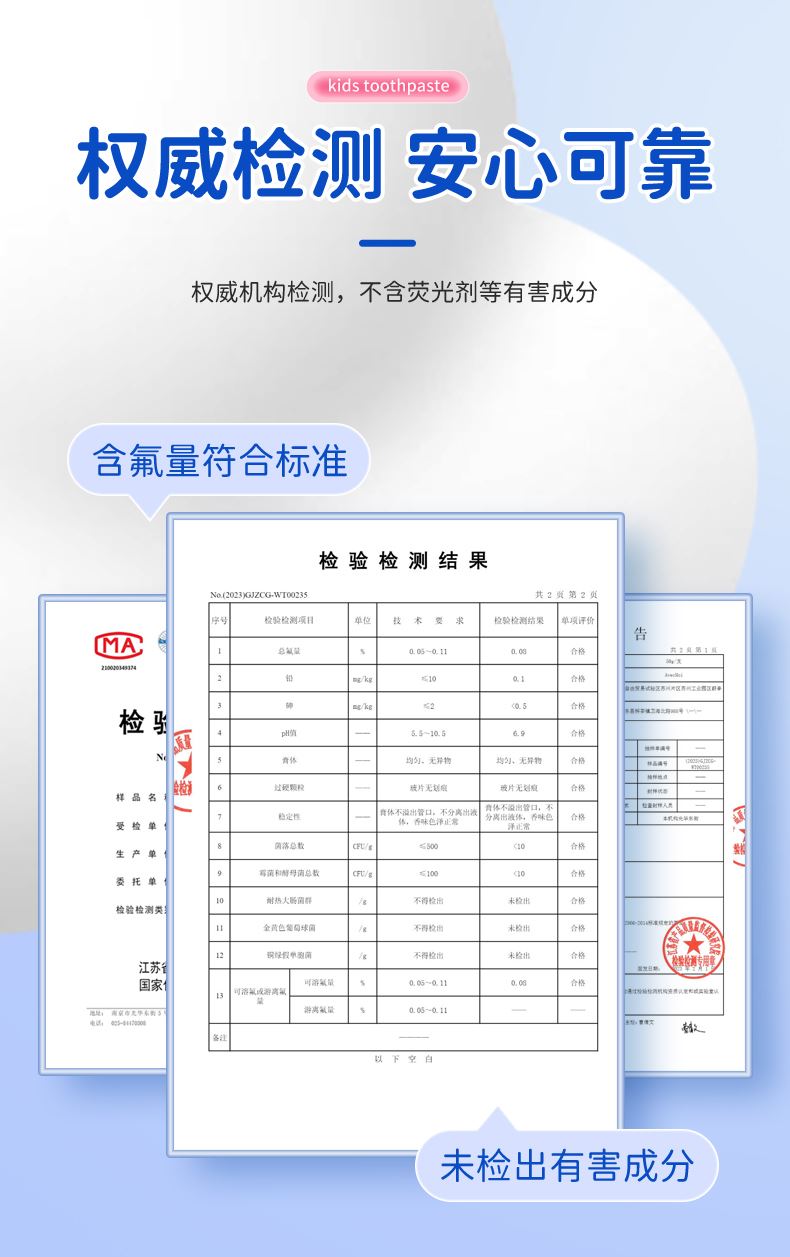 2.微米级质感摩擦剂,清洁牙齿的同时保护儿童牙齿牙釉质。