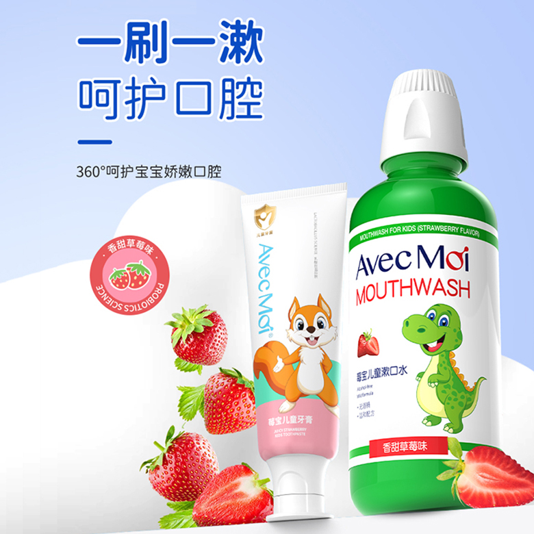 AvecMoi益生菌儿童霉宝牙膏*1+儿童漱口水*1