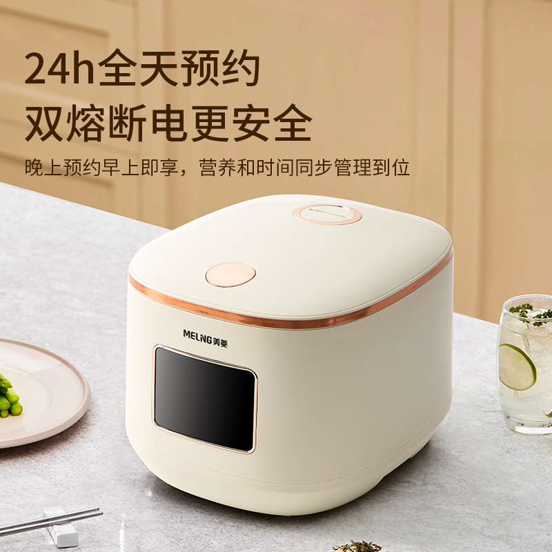 产品参数: 额定电压:220V 额定频率:50Hz 额定功率:900W 容量:5L 毛重:3.5kg /净重:3.2kg 彩盒尺寸:373*310*280mm 产品卖点: 1.5L大容量 多功能 一煲多用 2.智能烹饪米饭更香,预约定时随心所欲。 3.智能温控控制温度 ,双熔断更安全 4.不粘涂层 铝胆受热更均匀 5.顶部开盖免弯腰,可拆卸铝盖清洗更方便