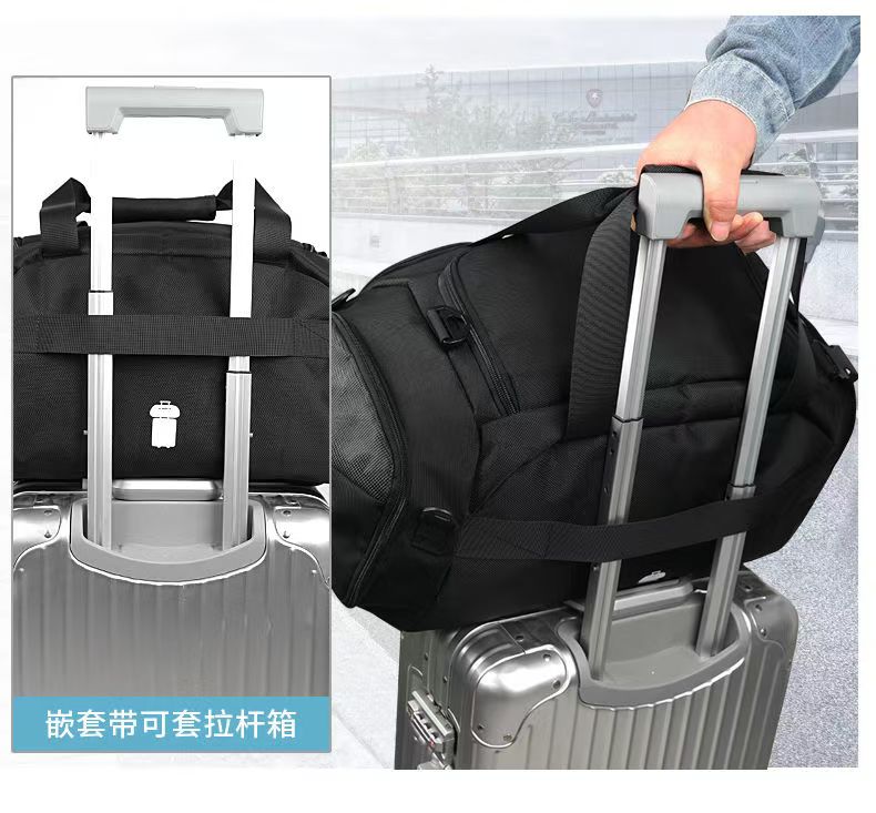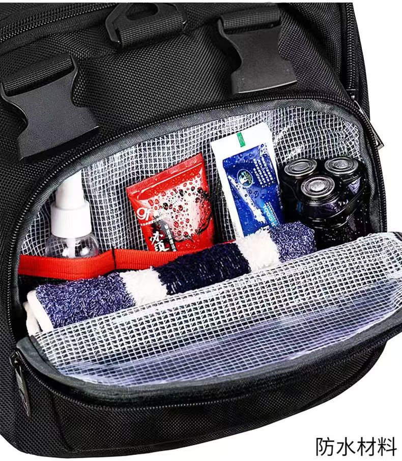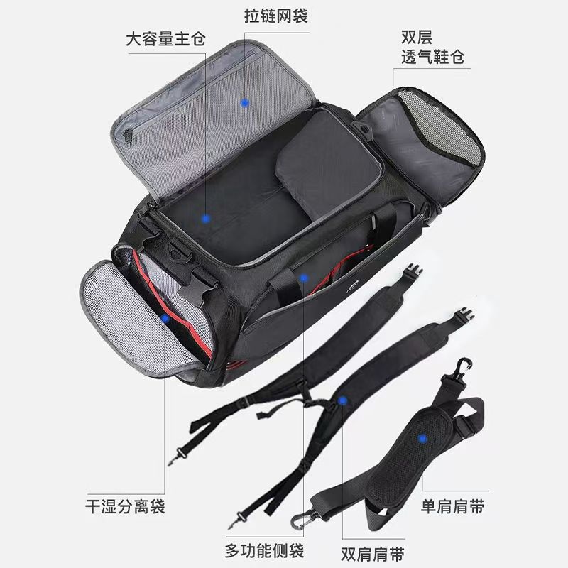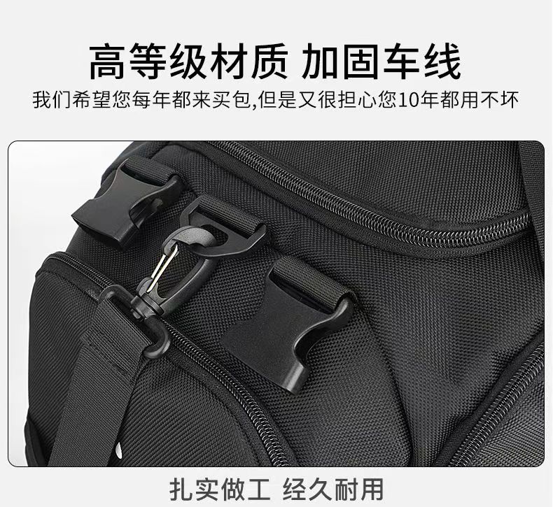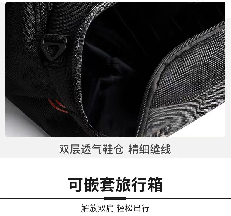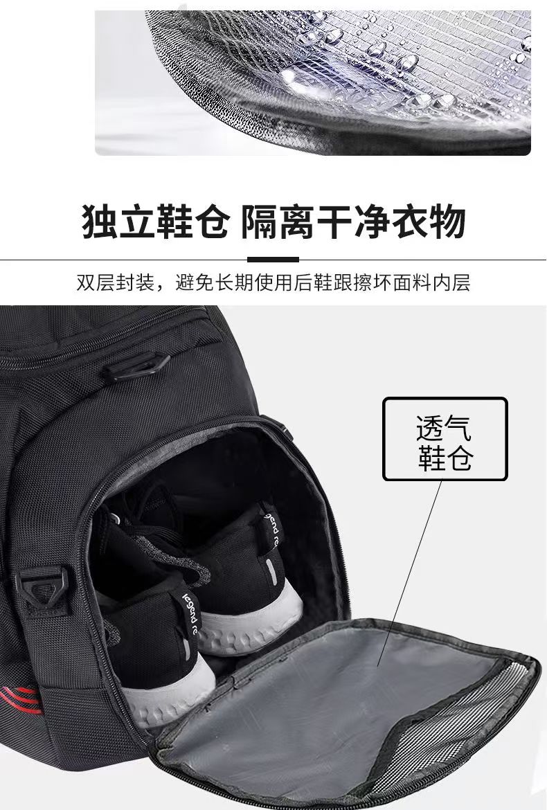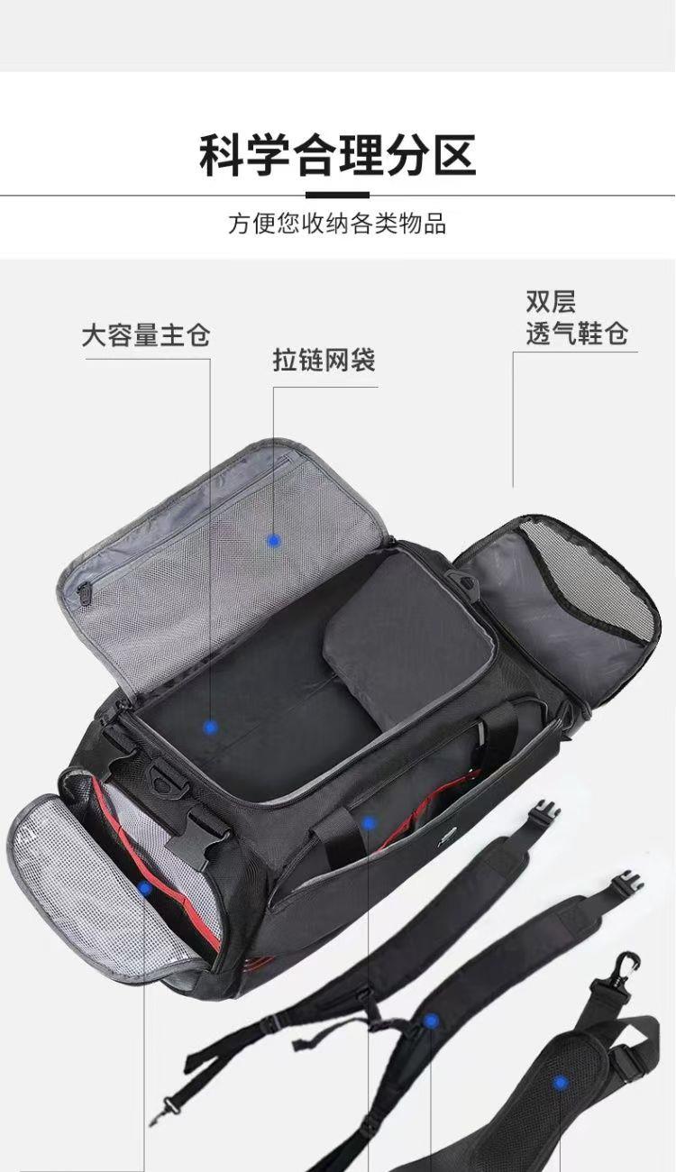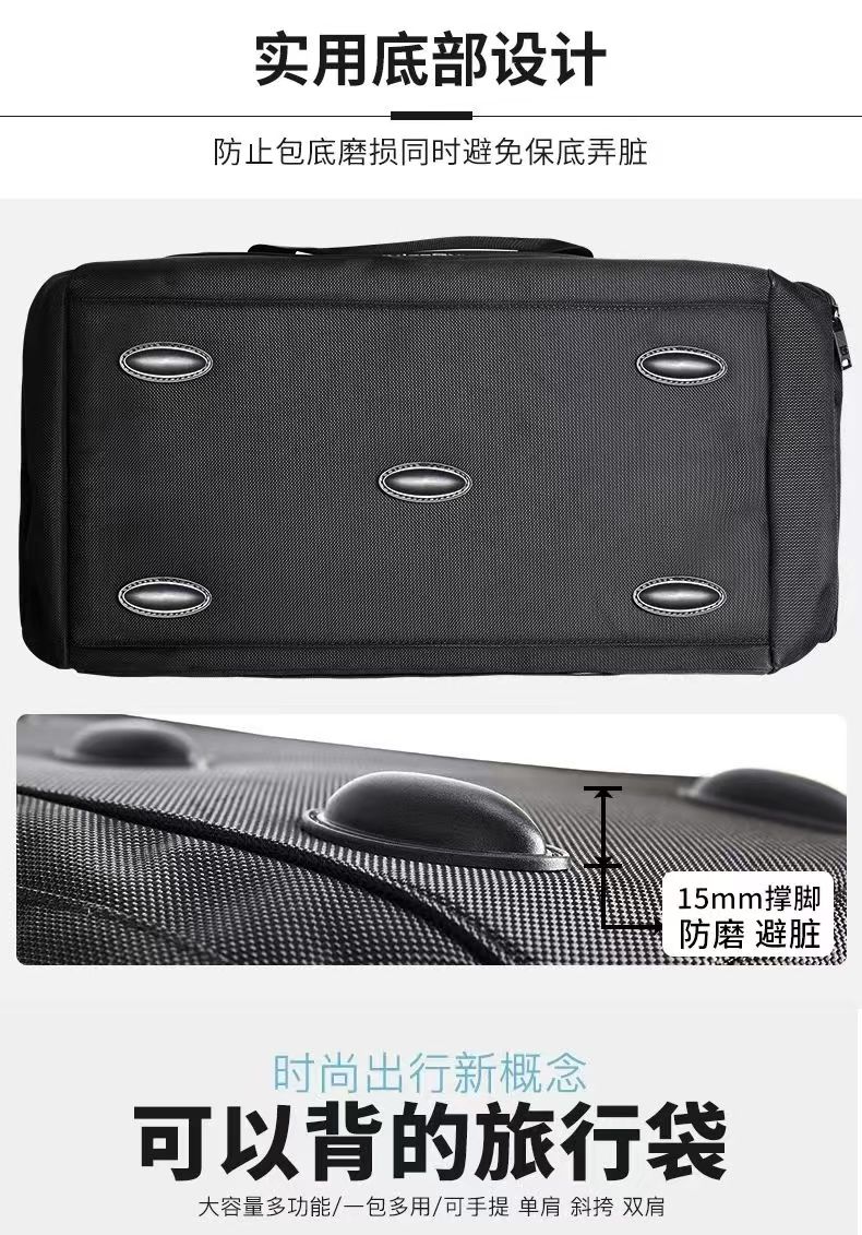 型 号: 66003 尺 寸:510*300*250MM 材 质:聚酯纤维 颜 色:黑色 重 量:1.2kg 旅行袋: 多功能旅行包,轻松驾驭各种场合。 干湿分离,独立鞋仓,一应俱全。 选用上等防水环保织物,雨天也可任意行