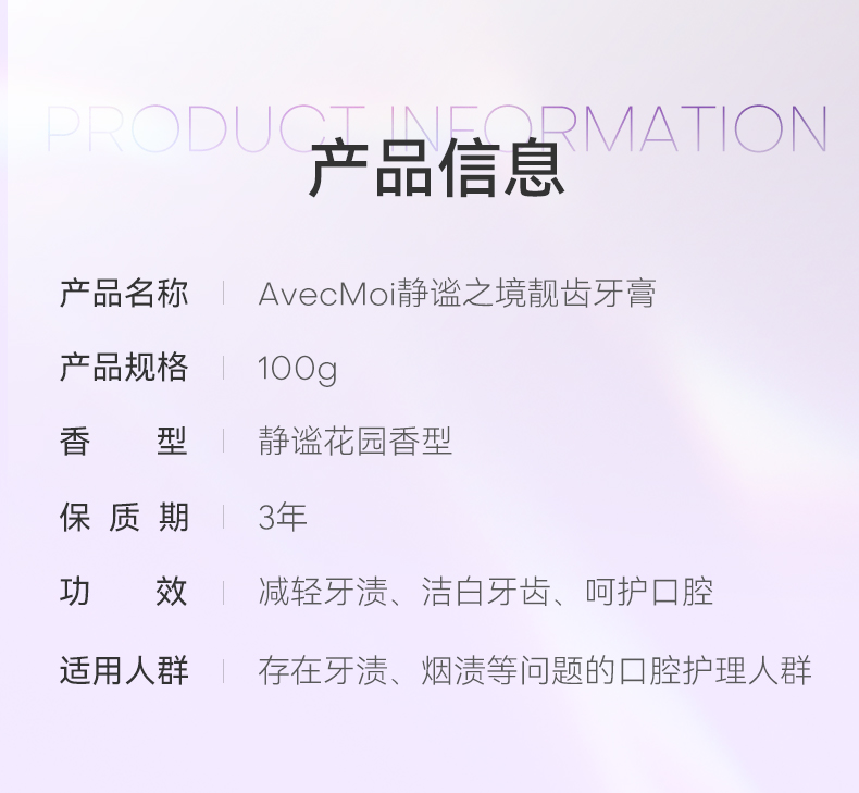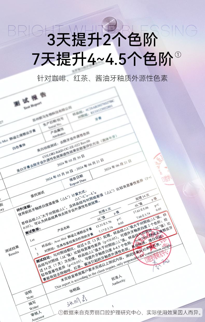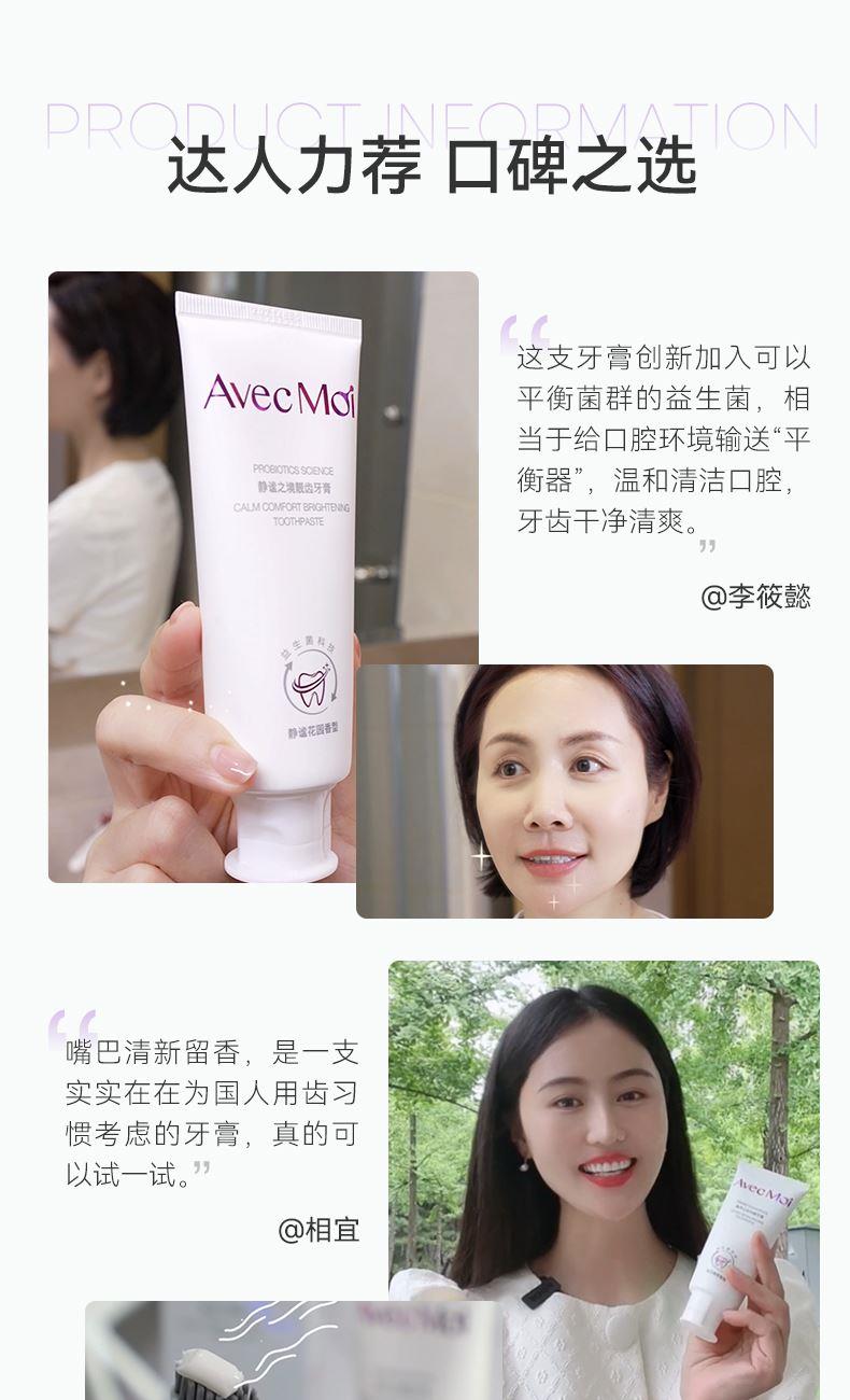 AvecMoi静谧之境靓白益生菌牙膏一支*100g