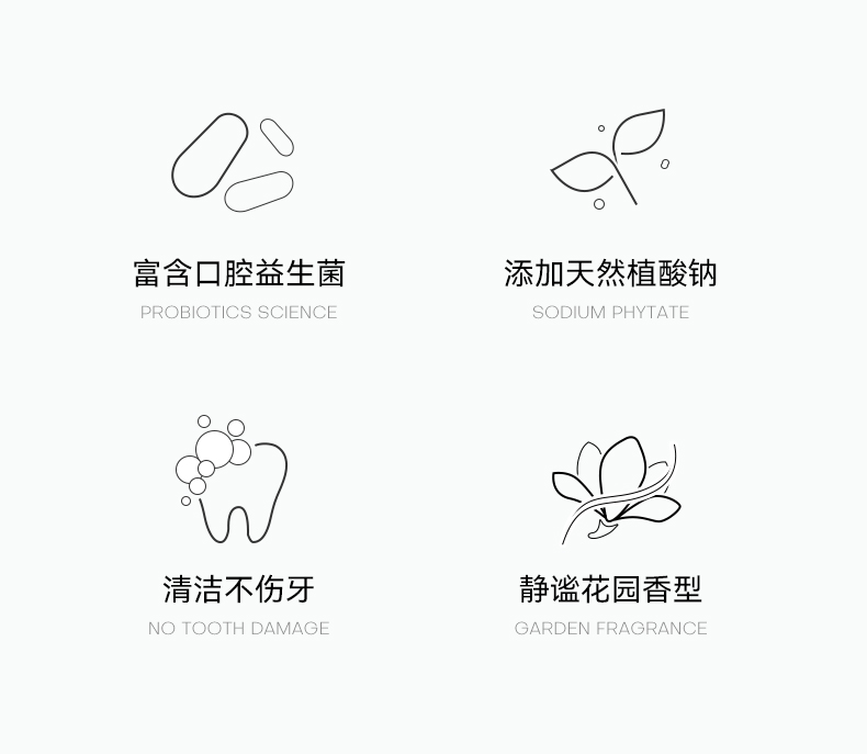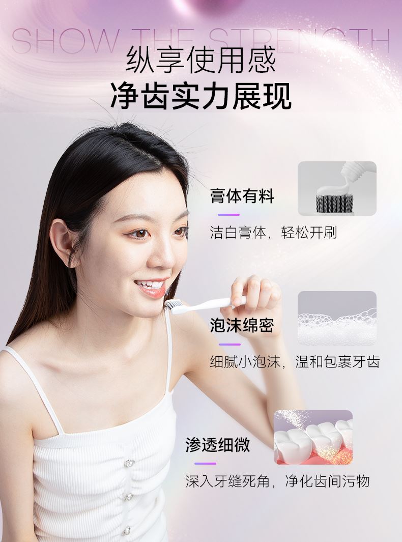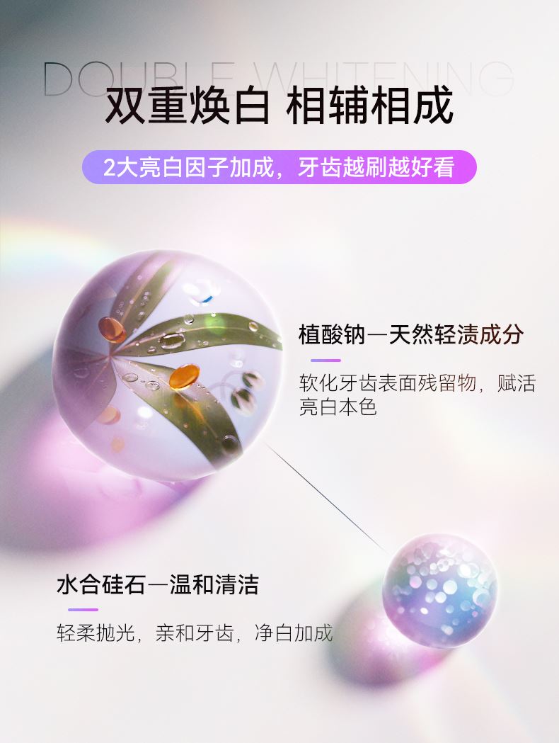 容量:100g 型号:YG-XLC100-1 1.添加口腔益生菌ADP-1成分,细致清洁,令牙齿更加洁白健康帮助牙齿形成护齿屏障,防护色素侵袭。 2.植酸钠-天然轻渍成分,软化牙齿表面残留物,赋活亮白本色 3.微粒级颗粒,通过细腻摩擦不伤牙齿,同时将牙齿上凝结物排出口腔 4.维持口腔微生态、洁白提亮、静谧花香