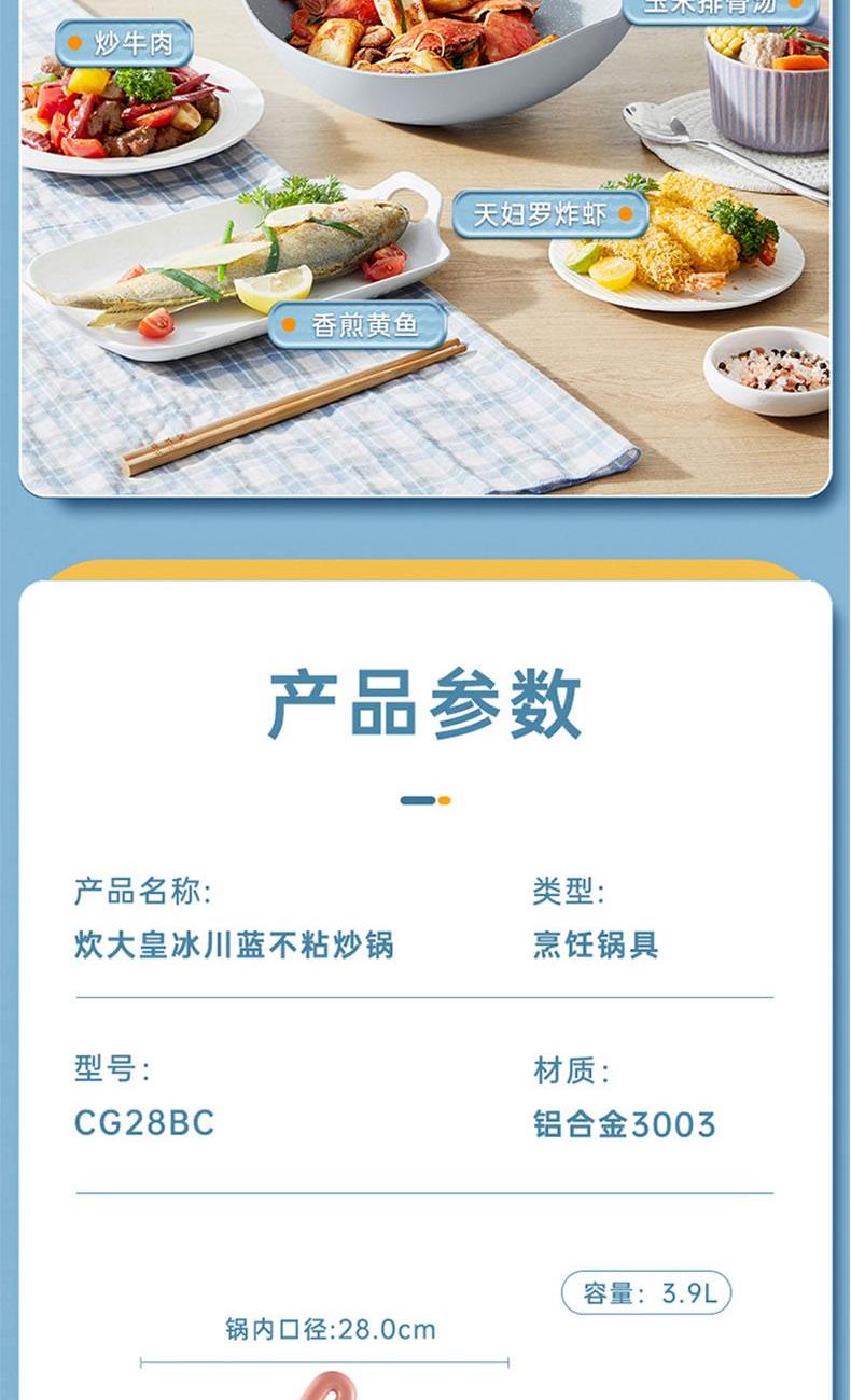 炊大皇冰川蓝不粘炒锅28cmCG28BC
