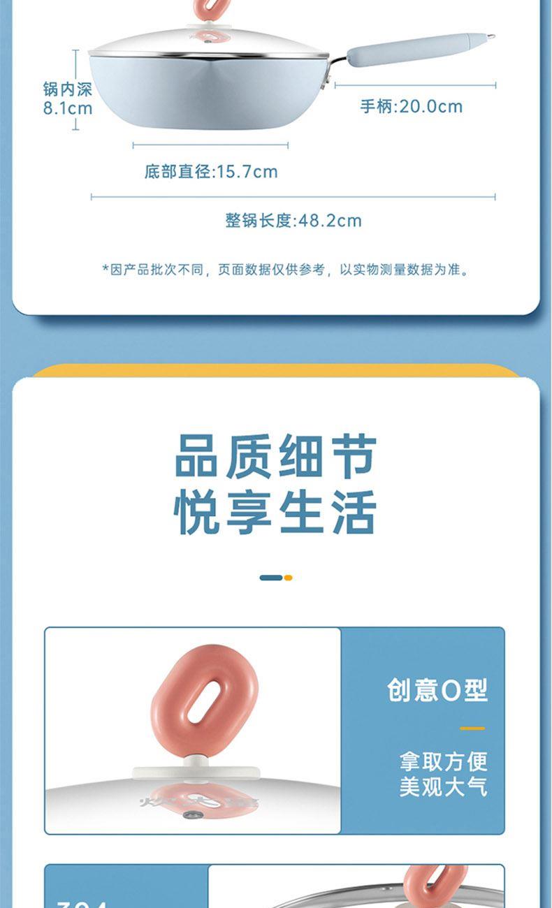 尺寸:28cm、材质:铝合金 卖点: 1、锅身纳米陶瓷工艺,久烧不变色。 2、煎炒炖煮炸,一锅搞定,节省家庭空间。 3、双刀流口设计,利落倒汤,保持台面清洁。