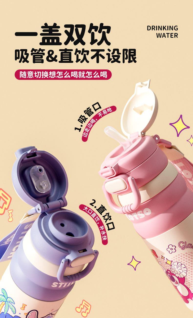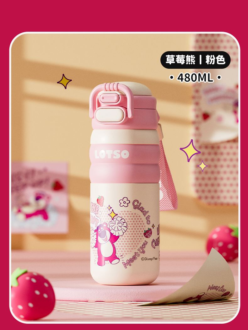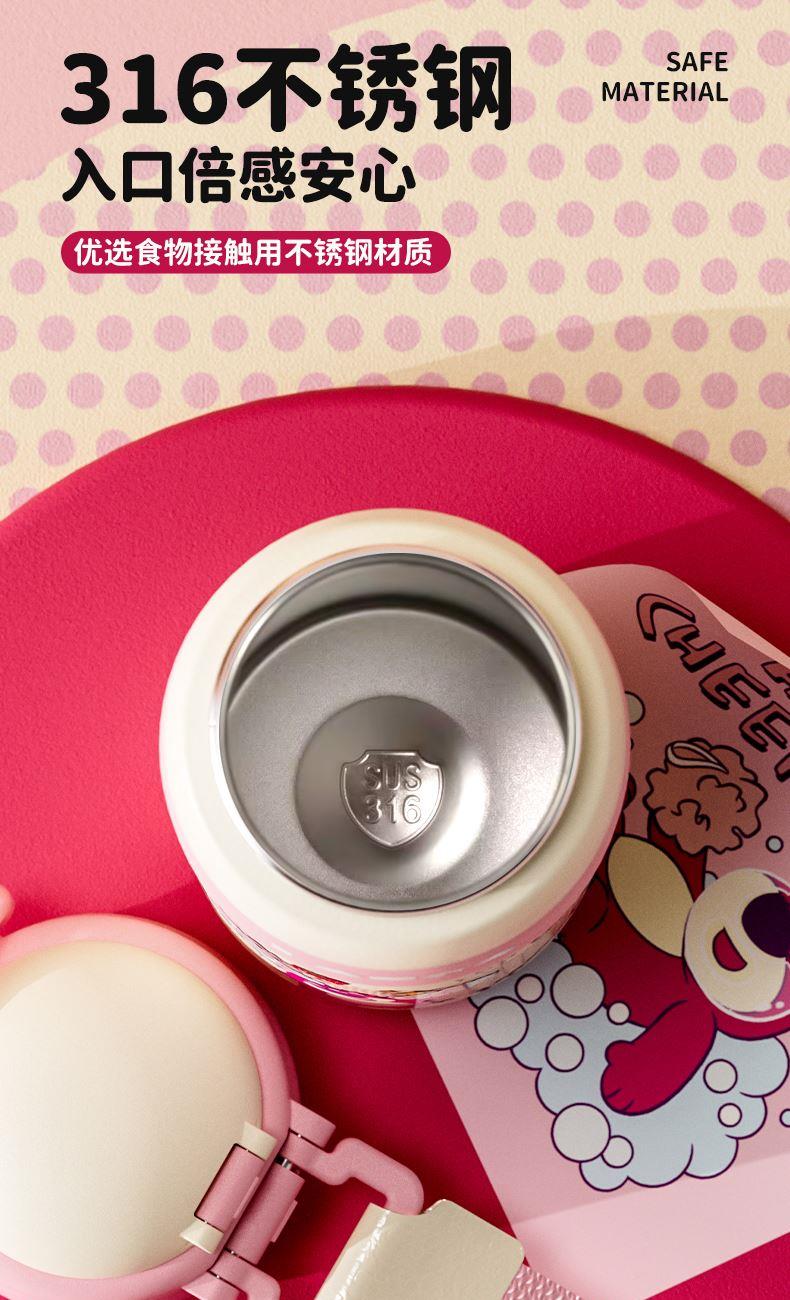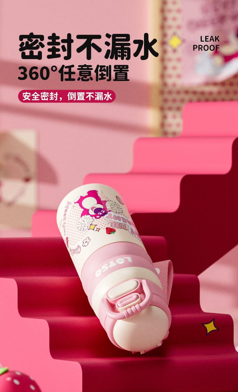 迪士尼儿童保温杯男女孩上学专用食品级316草莓熊双饮口吸管水壶480ML 型号:H15077 尺寸8.8*8.8*22.2cm 产品卖点说明:正版授权 长效保温 健康材质 一盖双饮 密封防漏 多种款式,四款萌趣款式高颜值选你所爱,密封锁扣防止误触,316不锈钢,密封不漏水360°任意倒置,防滑杯垫,便携提手