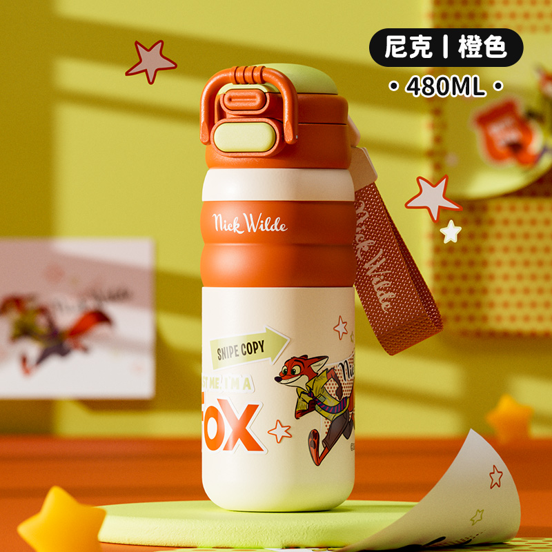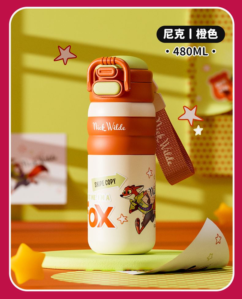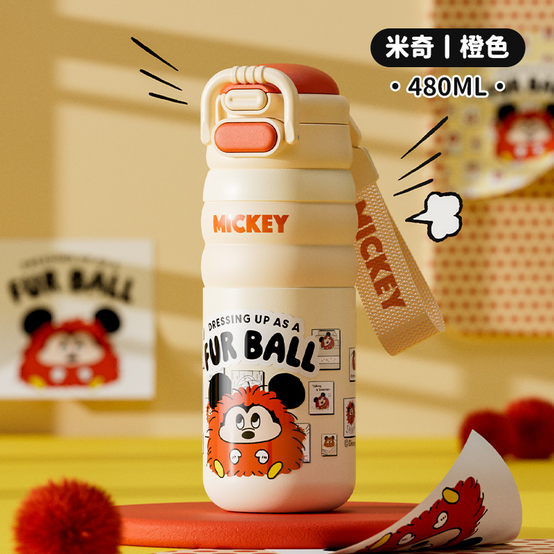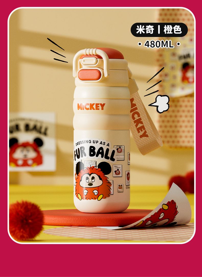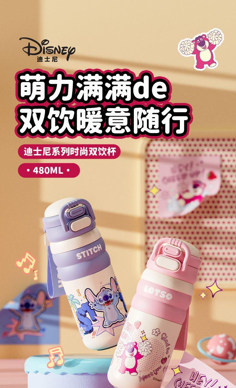 迪士尼儿童保温杯双饮口吸管水壶480MLH15077