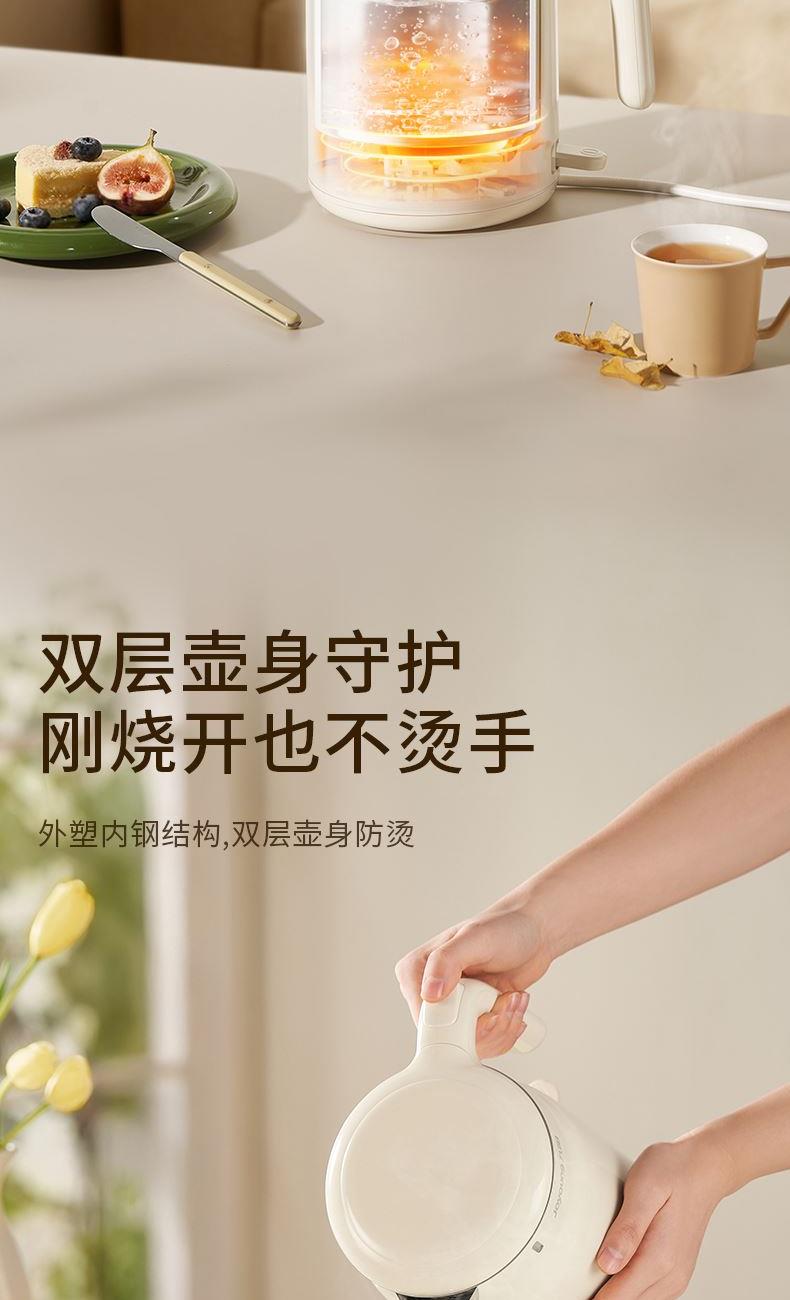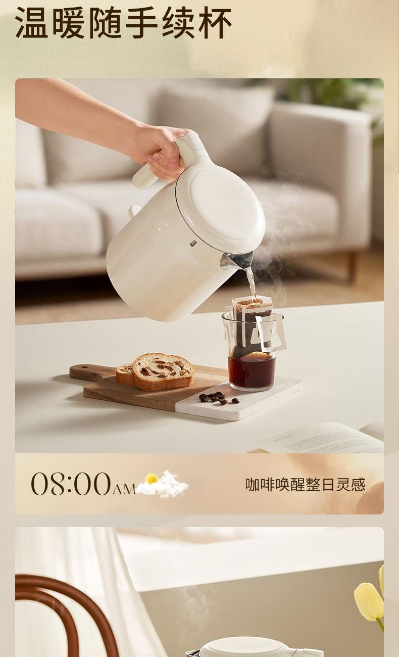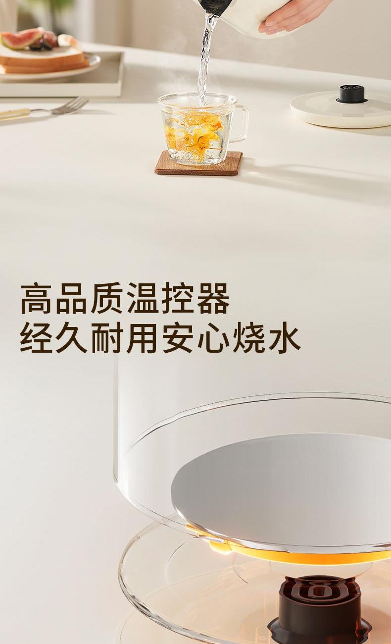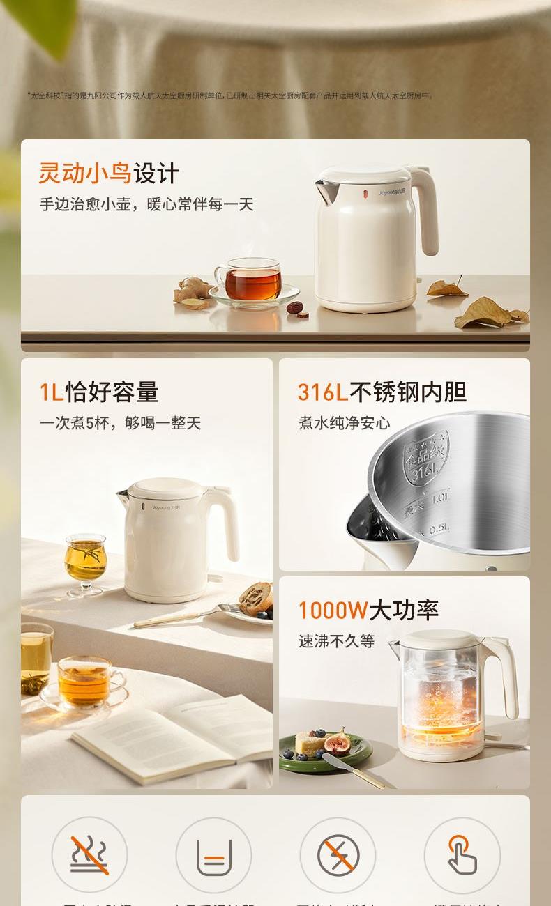 316L不锈钢内胆,煮水纯净安心 1000W大功率,速沸不久等 外塑内钢结构,双层壶身防烫 1L恰好容量