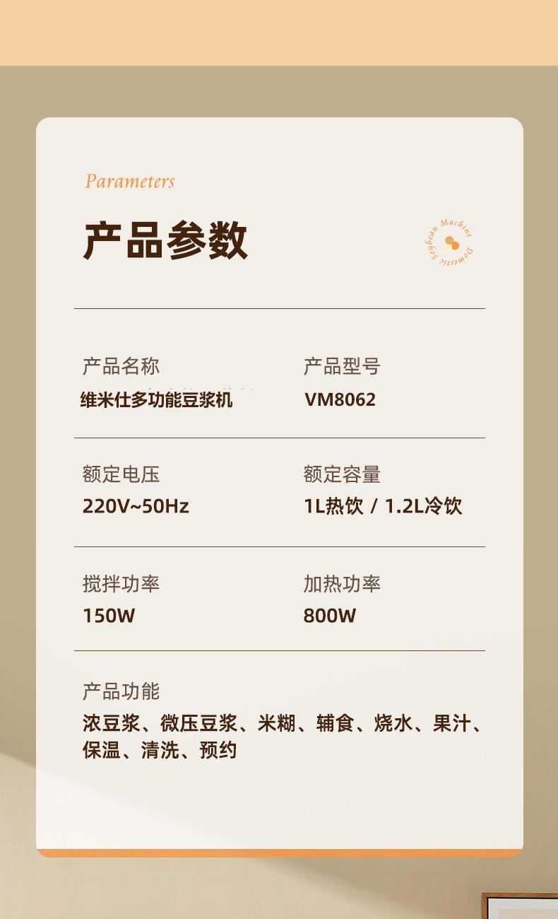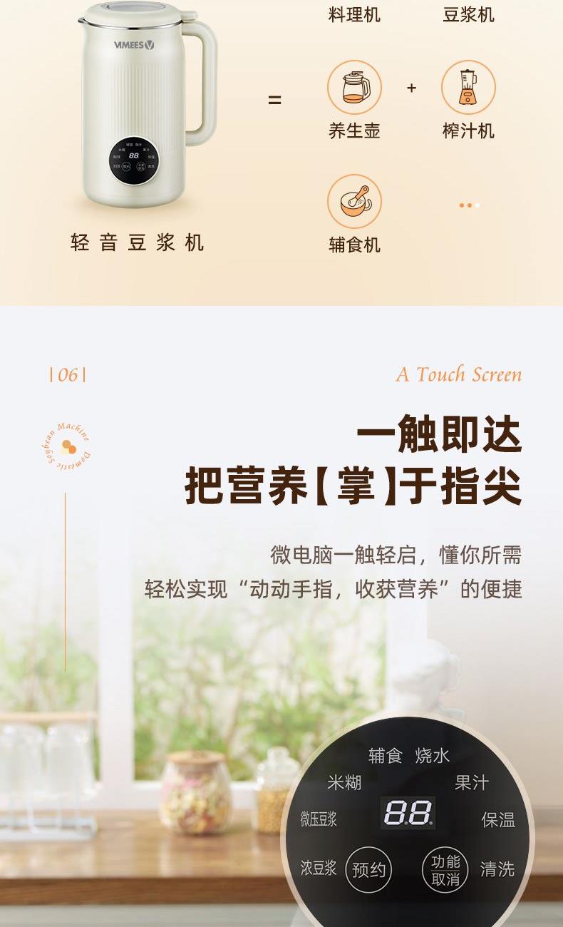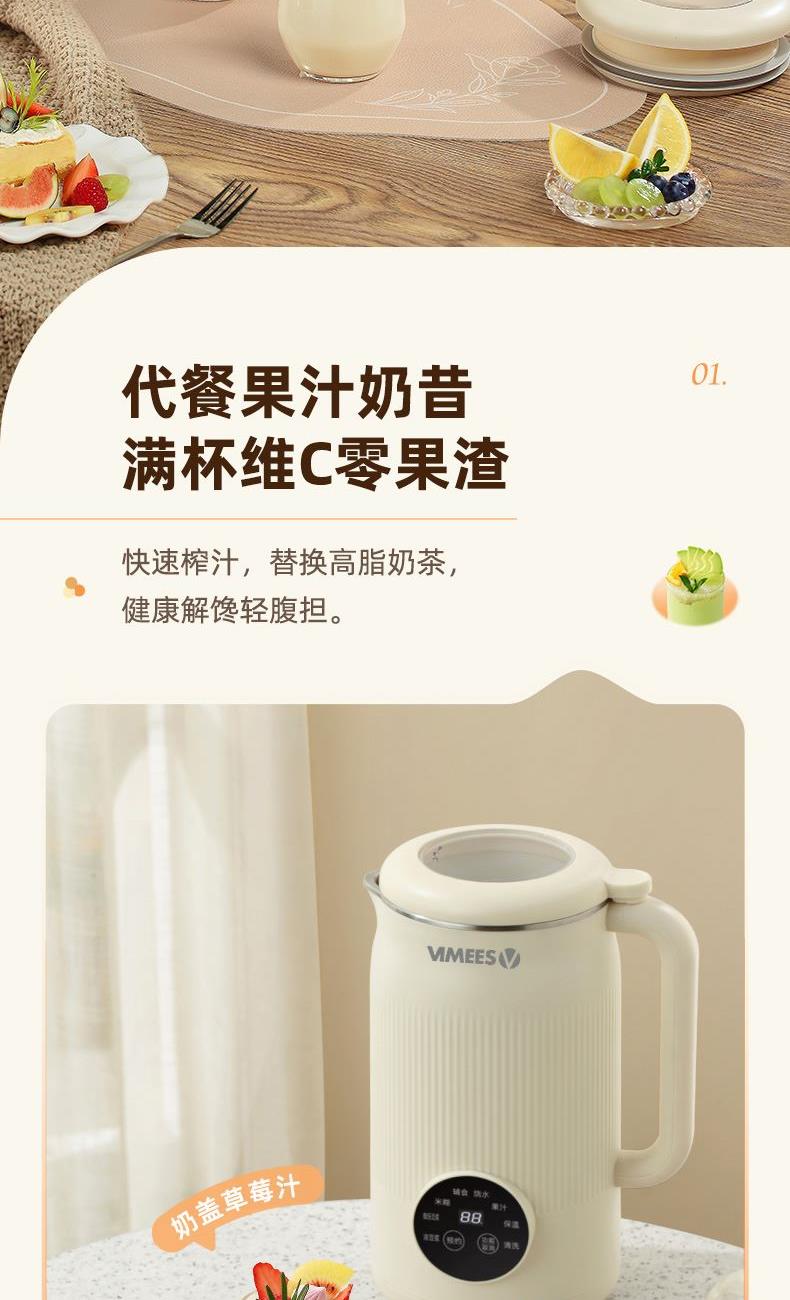 • 维米仕(vimees)静音破壁豆浆机1L米白VM8062