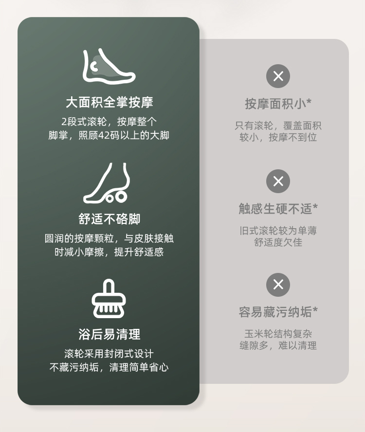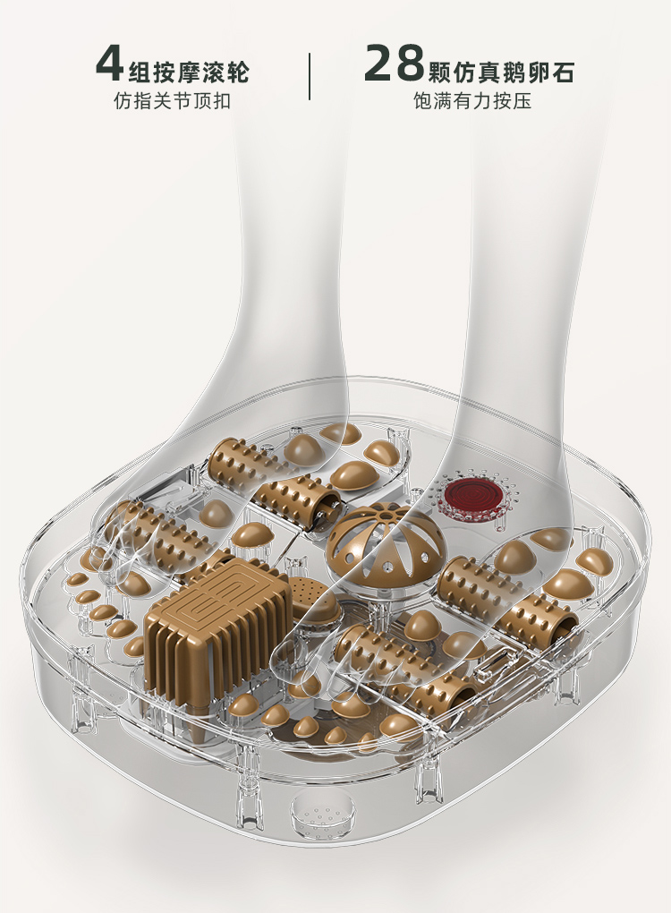 3、4组滚轮指压大面积按摩,28颗仿真鹅卵石,饱满有力按压;