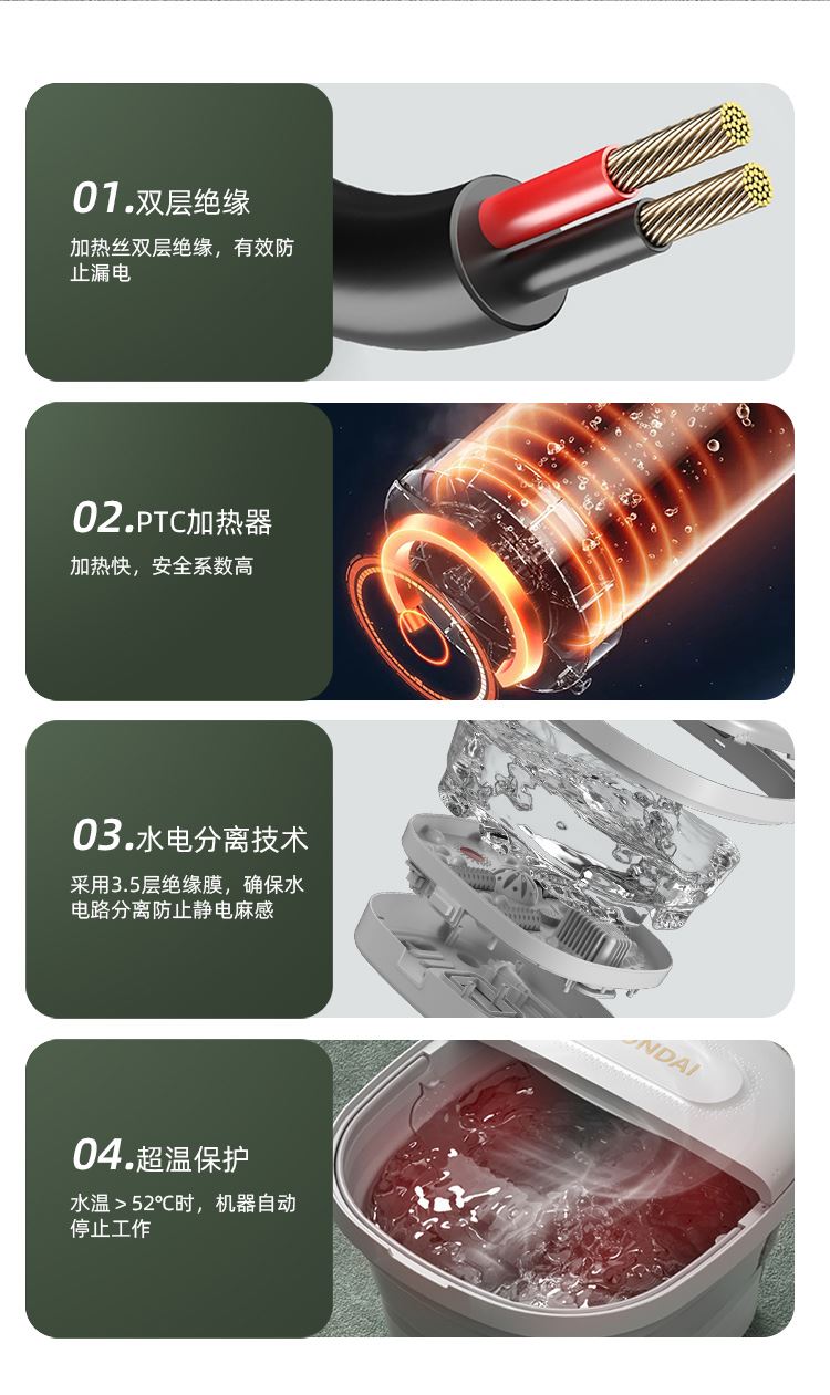 6、四重保护:PTC加热、双层绝缘、水电分离、超温保护。