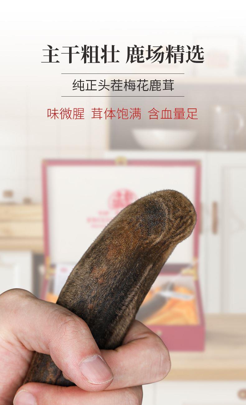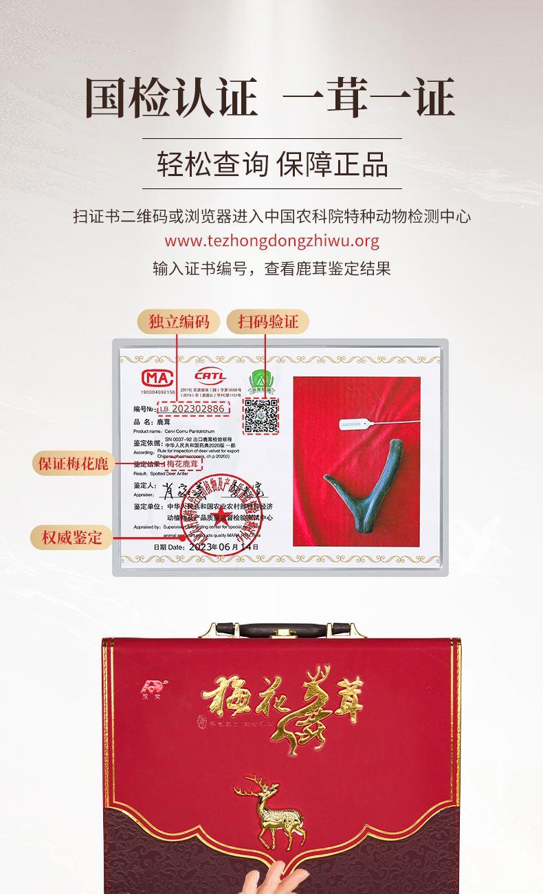 净含量: 135克左右 整枝干鹿茸,精致礼盒 国检认证,一茸一证。