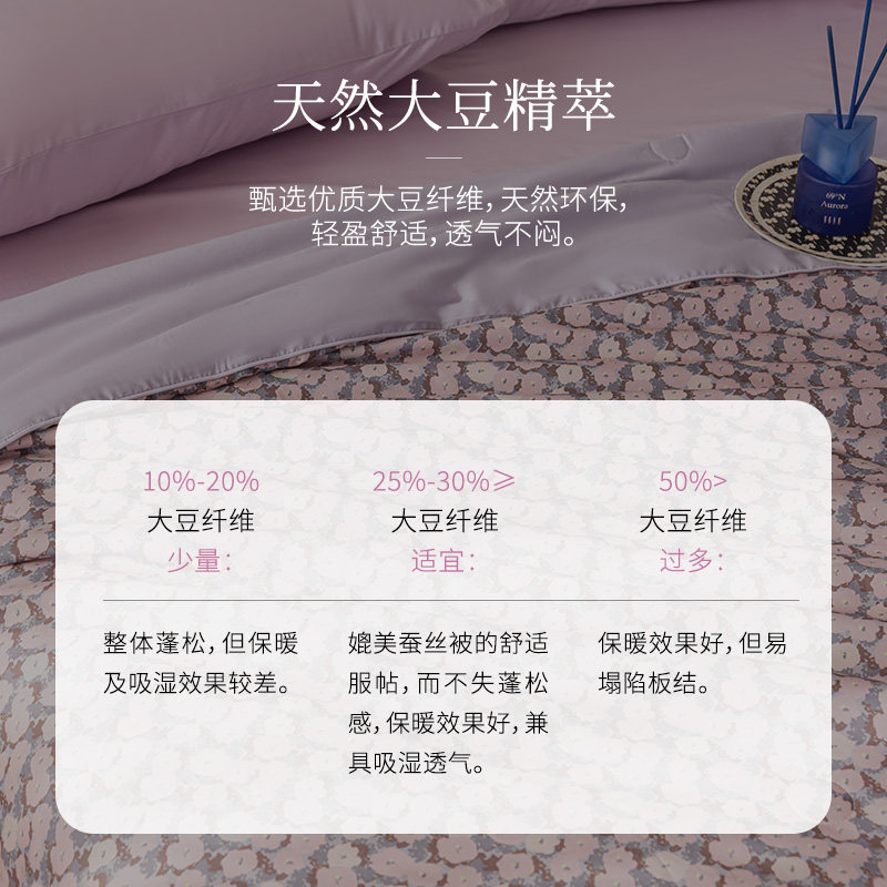 商品参数: 面料:100棉 填充:70%聚酯纤维/30%聚乙烯醇纤维(含有蛋白) 填充克重: 320g 规格:150*200cm(200*230可订制)