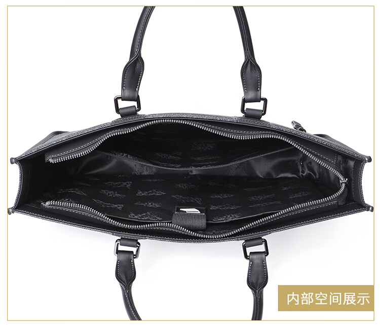 类别:公文包 材质:PVC(聚氯乙烯) 闭合方式:拉链 规格:400x90x295mm 容纳电脑尺寸:15.1-16英寸 风格:通勤风 商务风 时尚简约的轮廓外形,实用的内部大容量,潮流印花 根据人体工厂学设计,手感舒适,软硬合适,合理内部结构,物品摆放条理清晰,重要文件安心放 手提与斜跨两种携带模式,满足不同场景出行需求