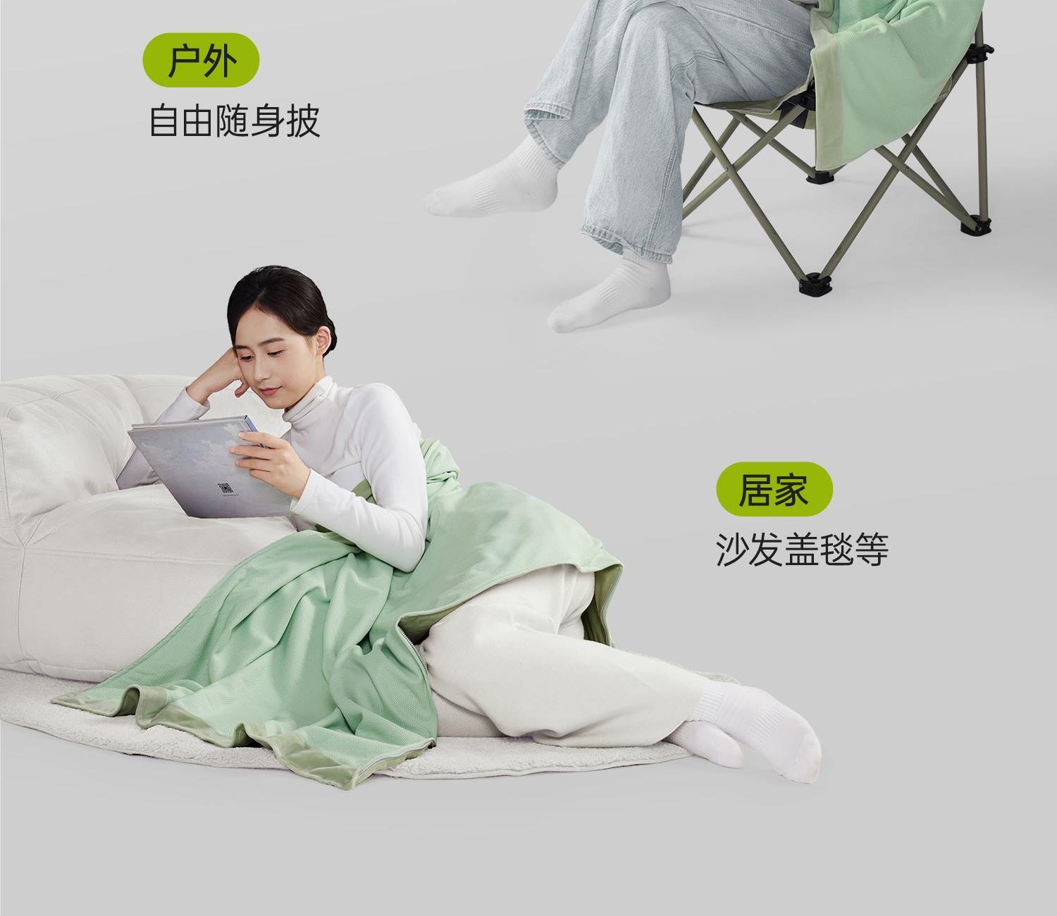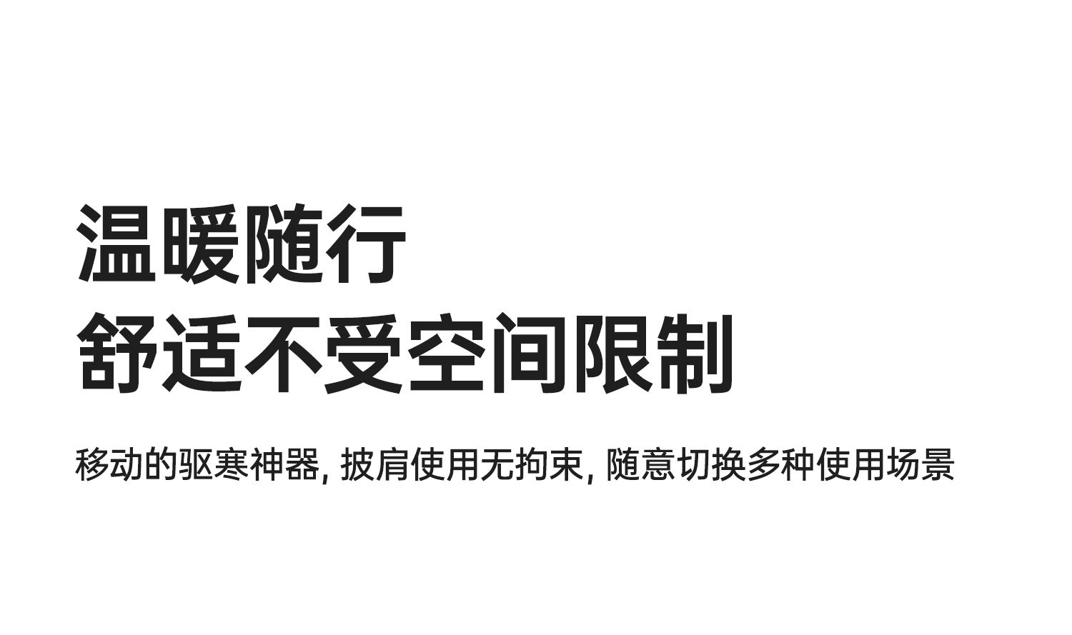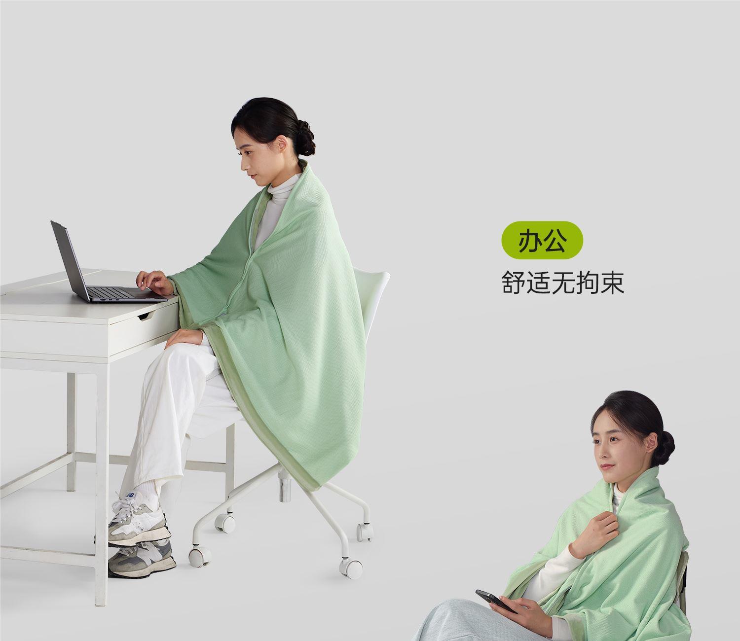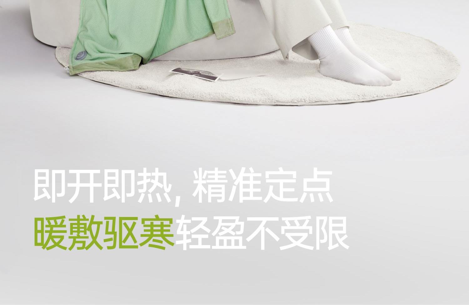 产品颜色:山野绿、初樱粉 69码: 6978516260949(山野绿)、 6978516260956(初樱粉) 产品规格:150*80cm 产品净重:680g 面料成分:外布聚酯纤维,里布聚酯纤维 产品明细:小飞毯*1、说明书*1 卖点: 1.石墨烯3秒速热,速热效率高,温暖持久稳定 2.原创拼色设计感,点缀冬日沉闷穿搭 3.双面4重聚热结构,打造肩背保暖仓,热感锁温 4.内外双层亲肤软绒,内亲肤、外锁温 5.三档温度可调,按键操作简单方便,兼具保暖舒适