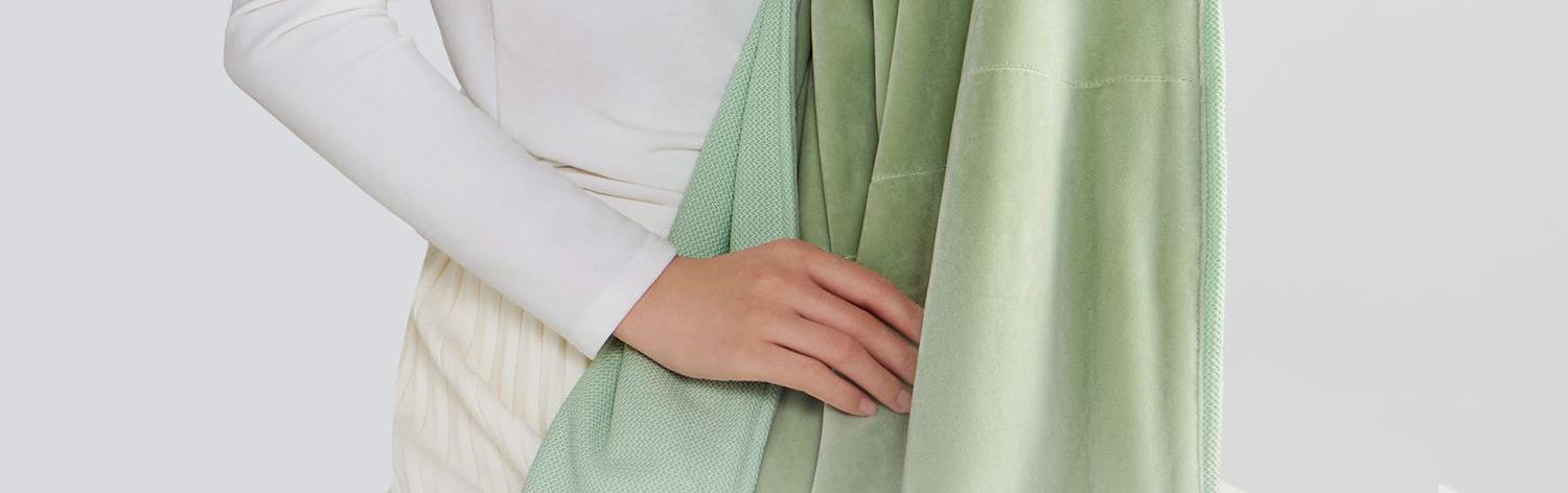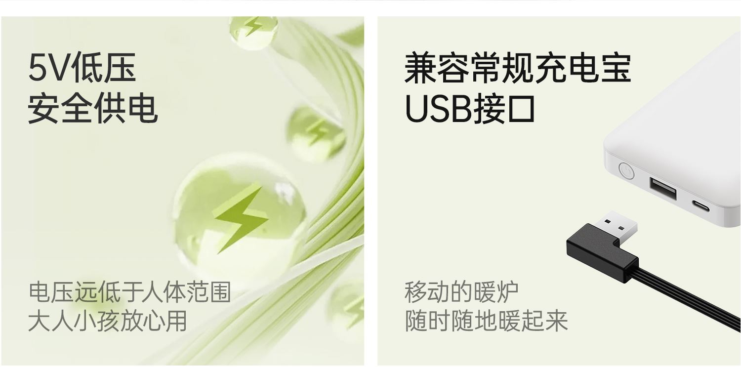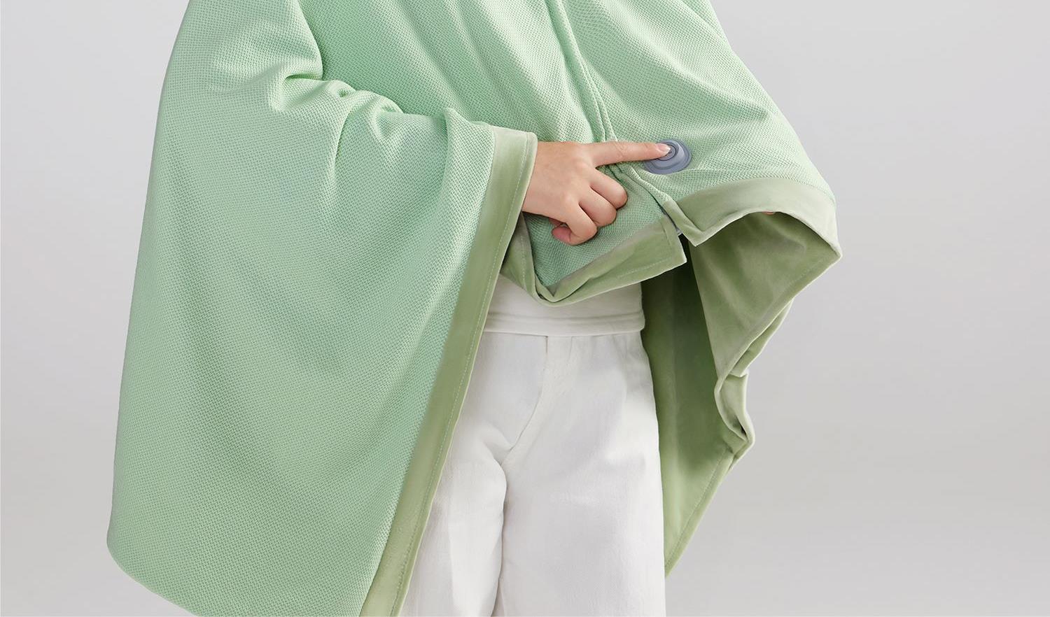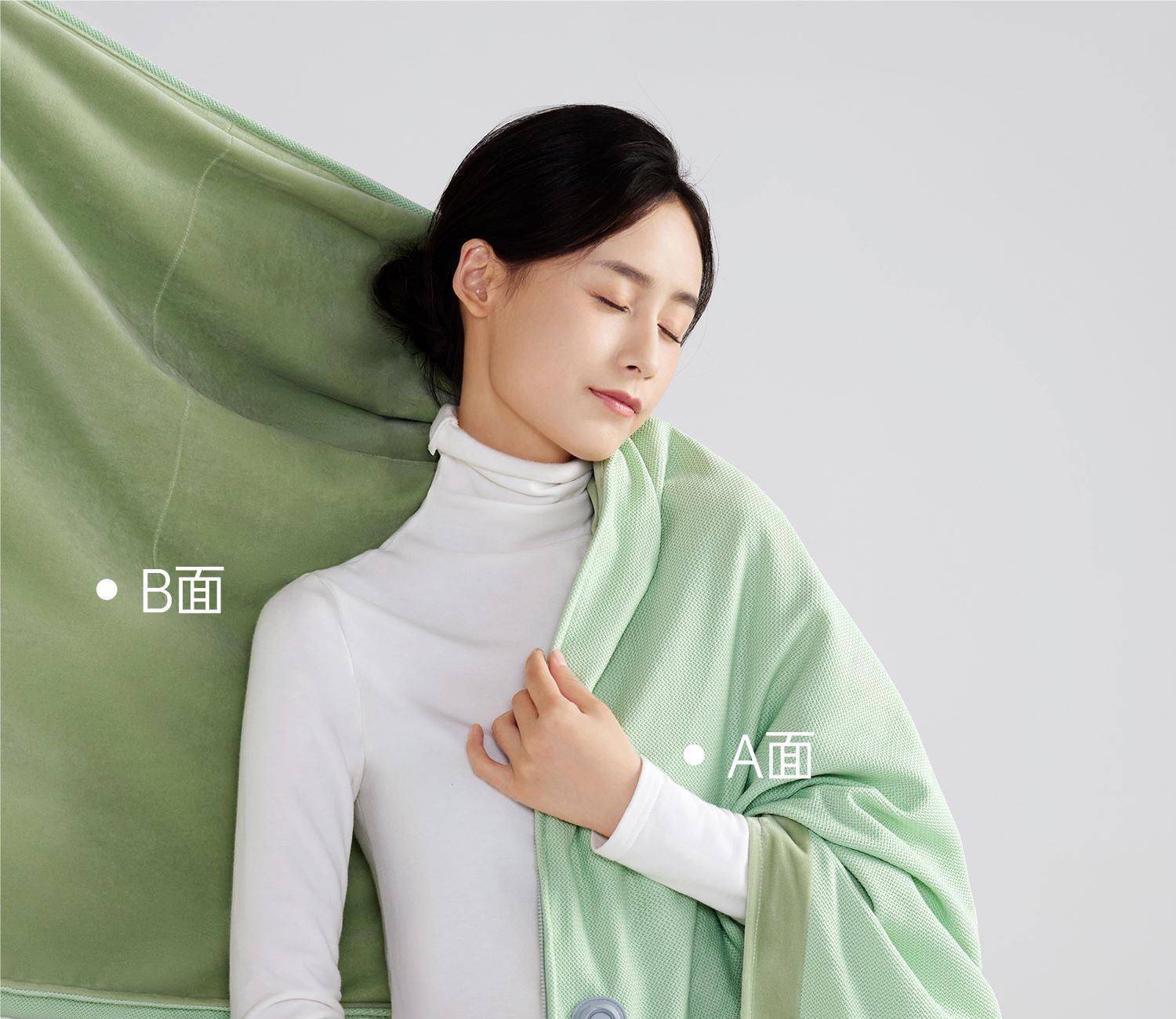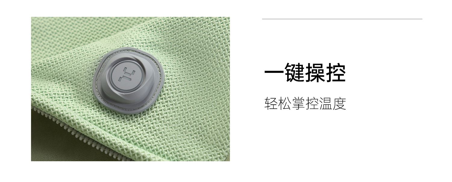 产品颜色:山野绿、初樱粉 69码: 6978516260949(山野绿)、 6978516260956(初樱粉) 产品规格:150*80cm 产品净重:680g 面料成分:外布聚酯纤维,里布聚酯纤维 产品明细:小飞毯*1、说明书*1 卖点: 1.石墨烯3秒速热,速热效率高,温暖持久稳定 2.原创拼色设计感,点缀冬日沉闷穿搭 3.双面4重聚热结构,打造肩背保暖仓,热感锁温 4.内外双层亲肤软绒,内亲肤、外锁温 5.三档温度可调,按键操作简单方便,兼具保暖舒适