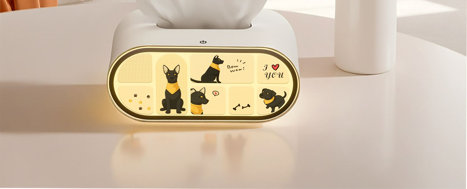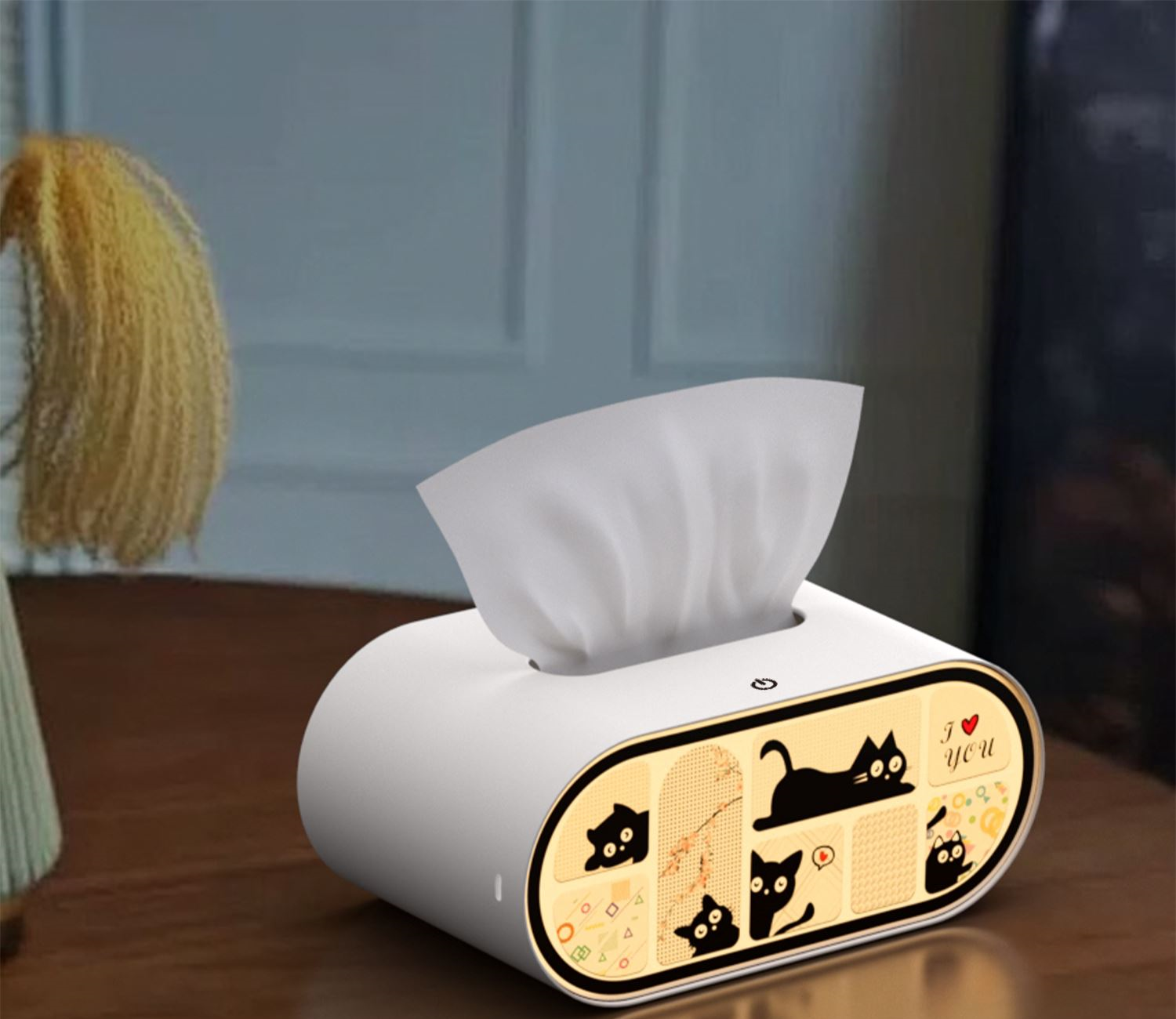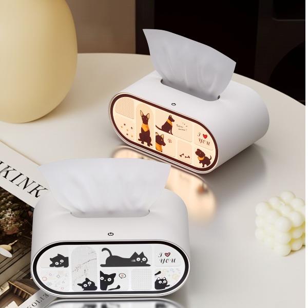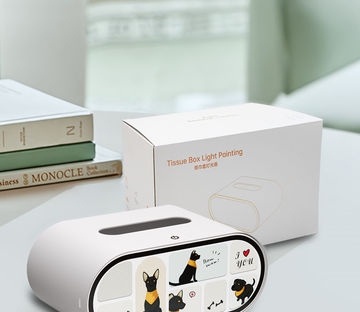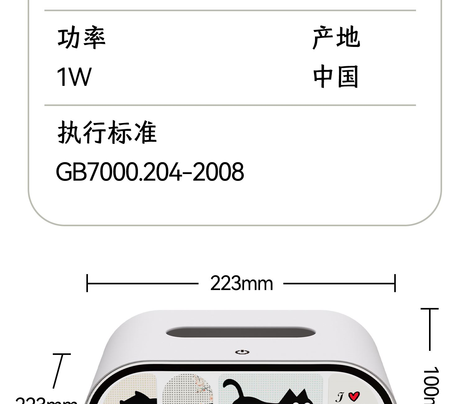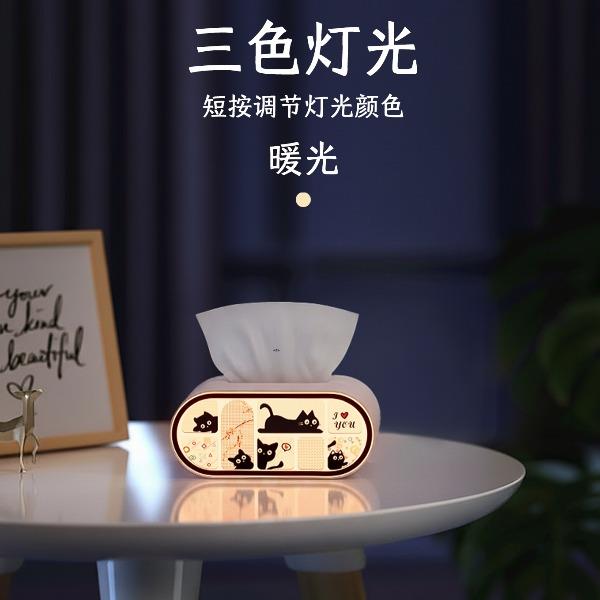 【颜色】白色 【材质】ABS/PMMA/电子元件 【产品尺寸】223x100x132mm 【包装尺寸】224*105*137mm 【电源输入】 5V/1A 【电池容量】1200毫安 【产品重量】337/445g 颠覆性创新纸巾盒,纸巾盒的光影艺术,匠心品质,轻奢格调,方圆搭配美学 加大出纸口,顺滑抽纸不卡顿 随心调节灯光亮度,触摸开光,三色灯光,