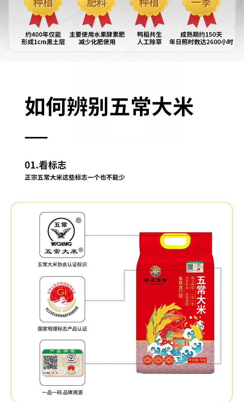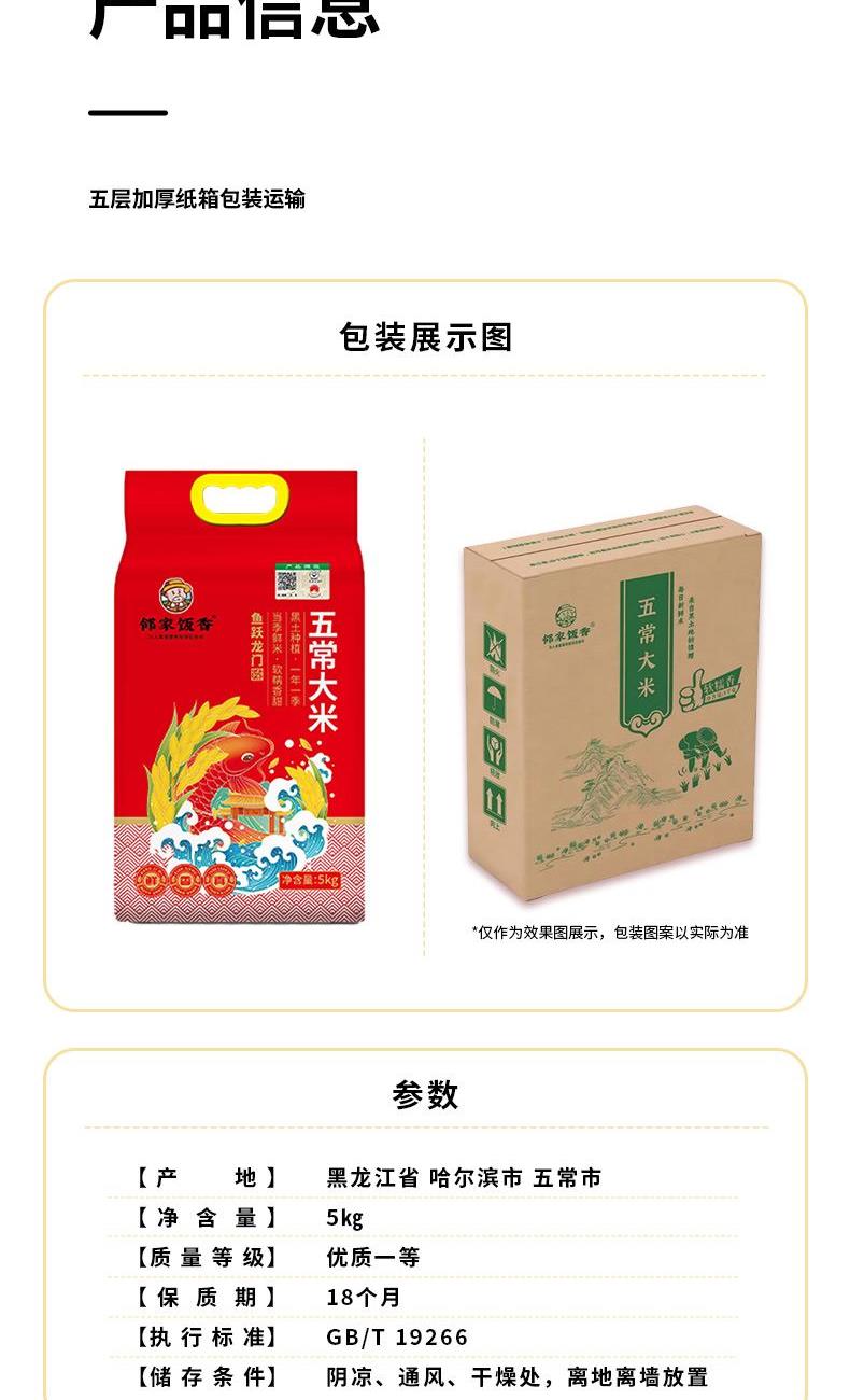 邻家饭香鱼跃龙门款五常大米5kg/袋真空双层包装YF129