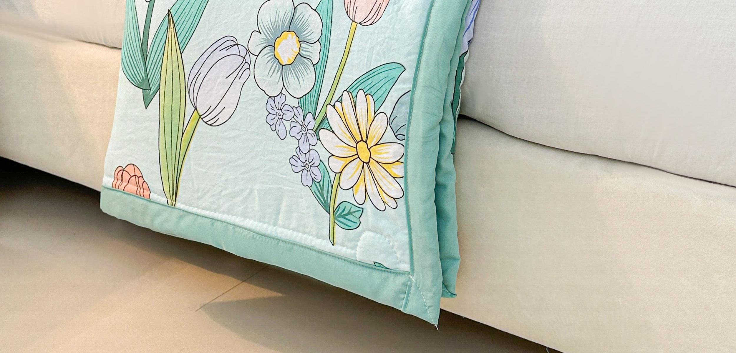 亲肤面料 | 采用亲肤的材质,柔软触感,手感舒适,不易气球,耐磨性好。 活性印染 | 新一代印染工艺,色牢度高,不易褪色,色彩靓丽。 面料:水洗棉 填充:聚酯纤维 尺寸:150*200cm