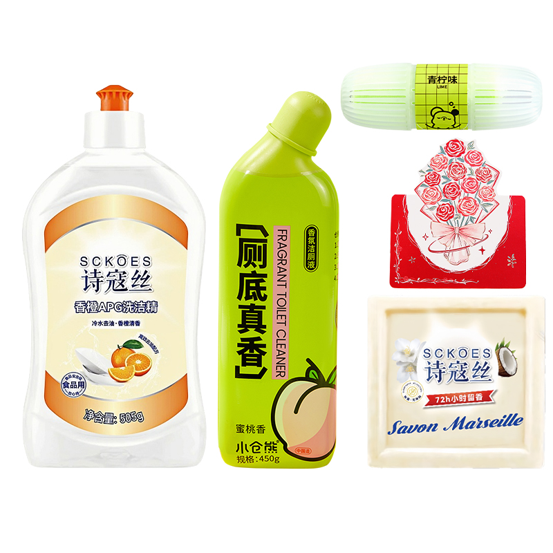 1. 欧莱雅精油润养丰盈洗发水700ml 2. 欧莱雅精油润养顺滑护发素700ml 3. 自然堂焕亮雪肌沐浴露600ml 4. Sckoes诗寇丝 皂310g 5. Sckoes诗寇丝APG超浓缩洗洁精505g 6. 小仓熊香氛洁厕液(蜜桃香)450g 7. 小仓熊马桶挂篮(单个装)50g 8. 立体玫瑰花贺卡(赠) 9. 精选精美礼盒-LH006