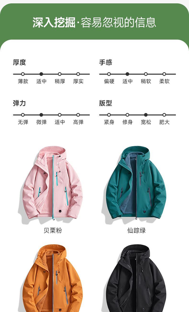 货号:E5602 材质:聚酯纤维 内胆:摇粒内胆 尺码:XS-3XL 产品特点: 面料工艺 透气 防风 防水 防污 蓄热保暖 抵御寒冷与潮湿 登山户外运动