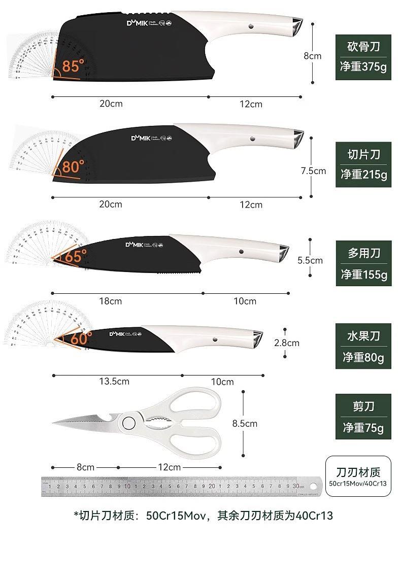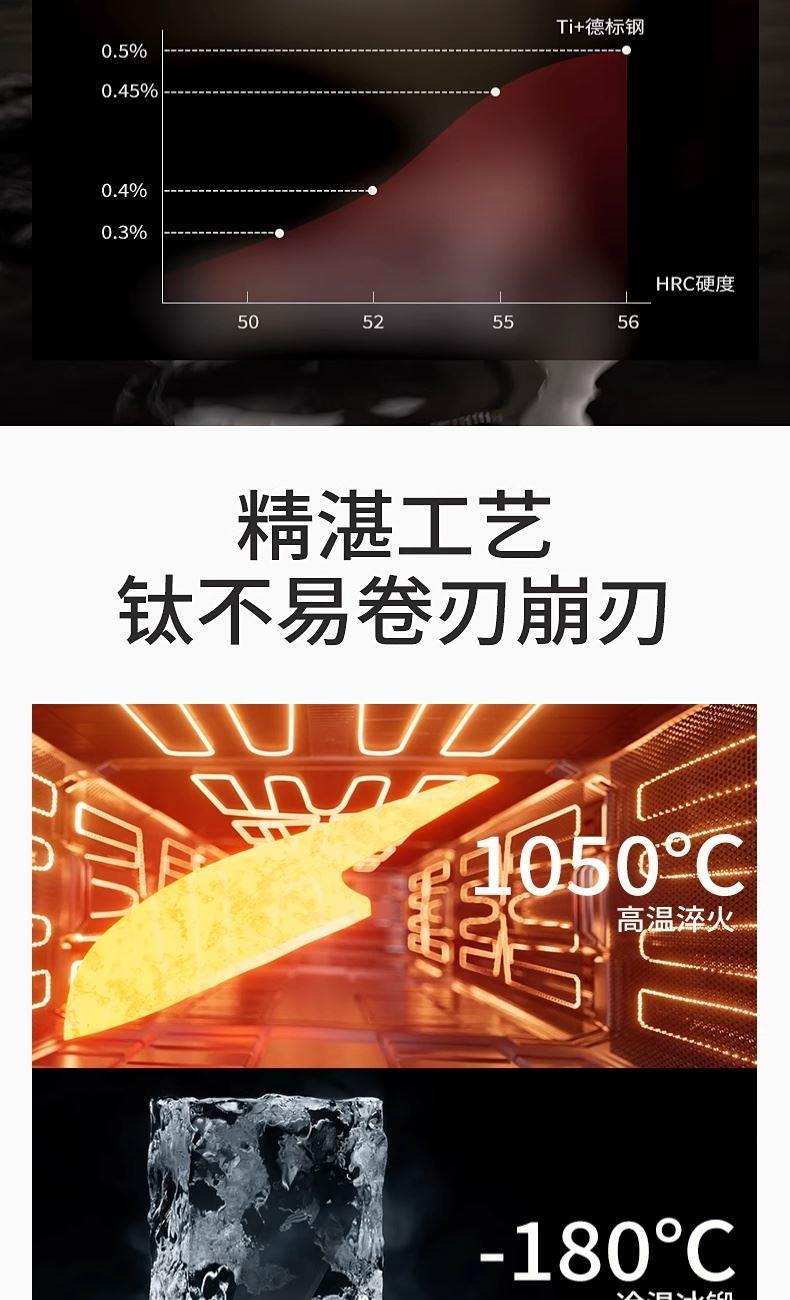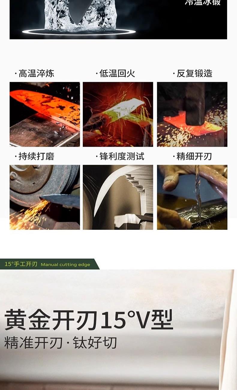 · 进口德钢"配好刀全钢刀持久锋利 · 德标好钢材超国标3倍锋利 4倍耐用,防锈更好收纳刀身一体精制造 ·黄金比例至钢一体15°手工开刃冰锻淬火硬度再提升 · 持续锋利切·片·砍·剁样样精通 · 不大不小刚刚好轻松收纳不占地