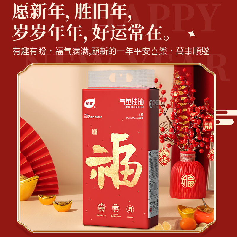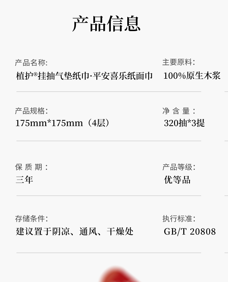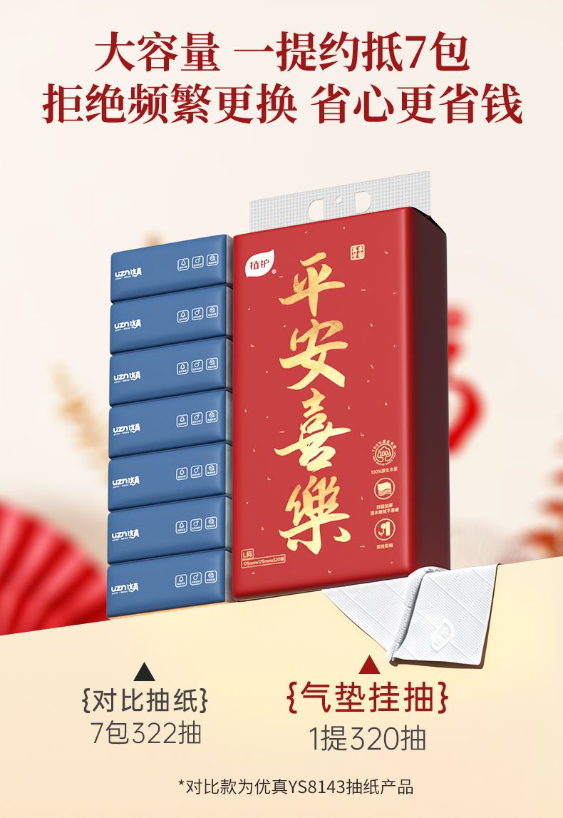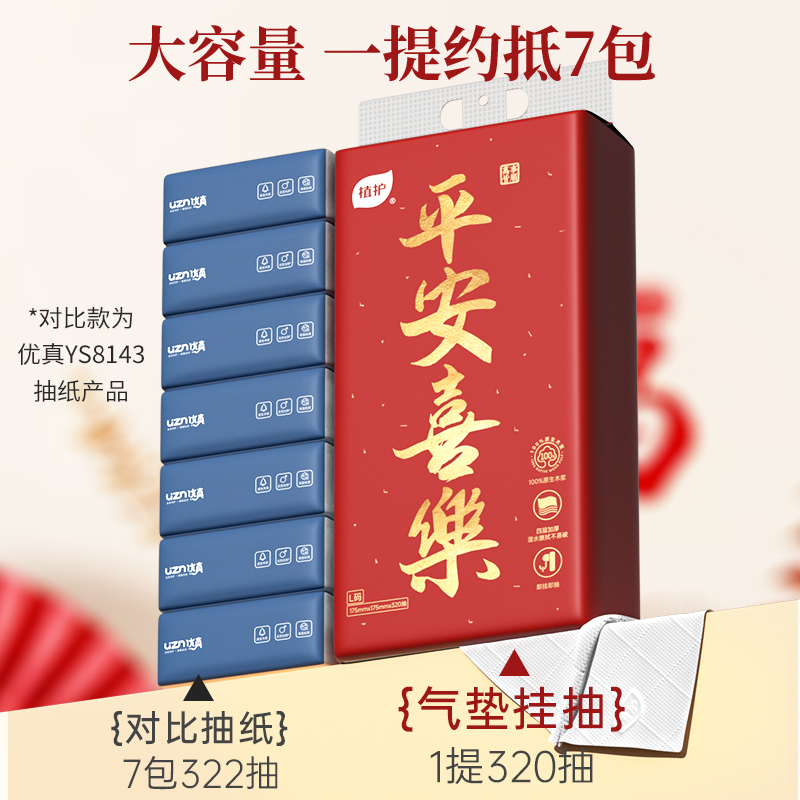 • 植护平安喜垫挂抽抽纸175*175mm/4层320抽3提/袋