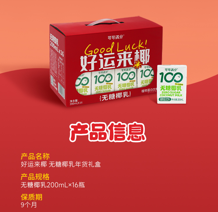 可可满分无糖椰乳好运来椰礼盒-200ml*16入