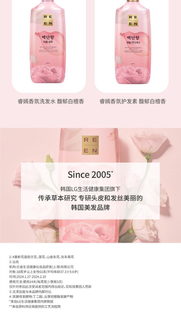 赋予东方神韵的山茶的营养,塑造迷人秀发,散发清新雅致的白檀香香气,水润盈亮秀发 通过LG生活健康香精研究的不懈努力,利用香乳化技术,加强香味的持久性,使得花香萦绕发间。 产品功效:强韧发根 呵护烫发 葆受损发质 头皮清爽。 包装设计:采用的是:按压式的设计,方便取量,避免浪费,而且他还设计一个扣锁,可以避免漏出。 ----- 竹盐多彩便携旅行套装(颜色随机):出差旅游等方便携带,小小一个不占地方,竹盐系列牙膏+牙刷精心搭配