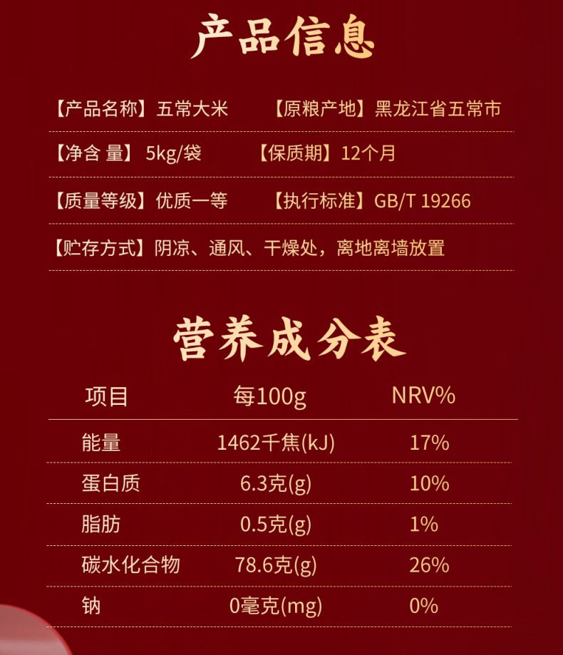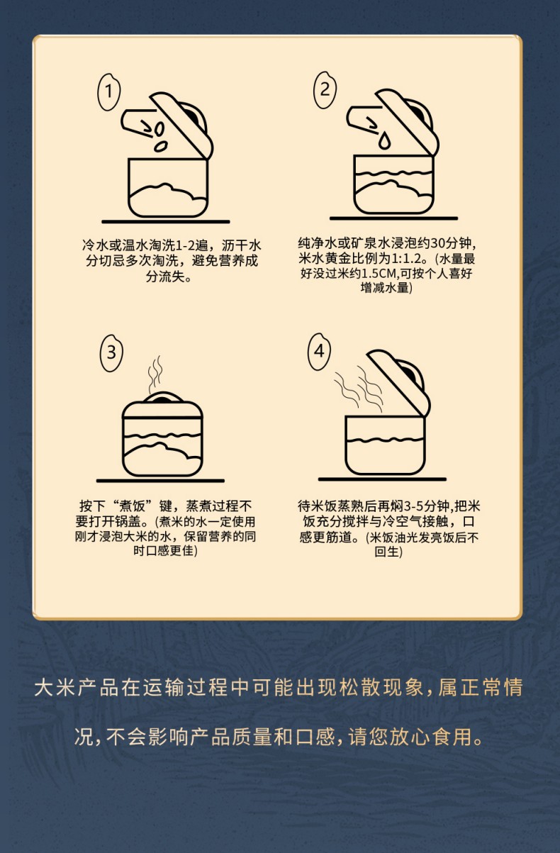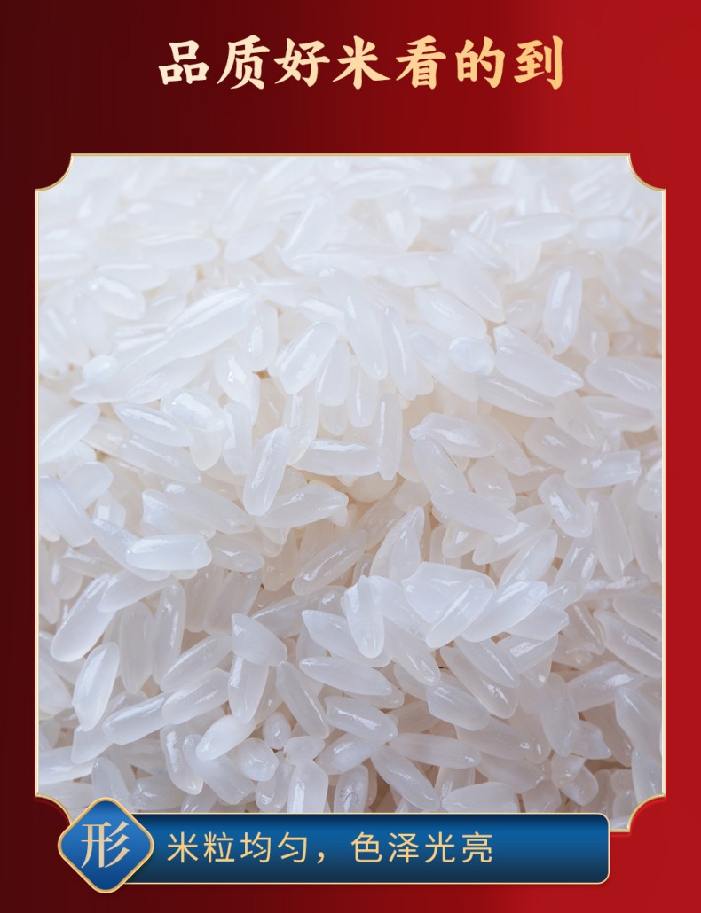 规格:5公斤 产品标准代号:GB/T 19266 质量等级:优质一等 米种:原粮稻花香2号 保质期:12个月 尺寸:500*245*95mm 稻花香米的包装简约大气,品质可谓上乘,米粒均匀,色泽光亮,醇厚绵长,芳香四溢。五常稻花香大米成饭食味清淡略甜,棉软略粘,芳香爽口,饭粒表面油光艳丽,剩饭不回生,是百姓餐桌上的首xuan,是日常生活中做米饭的佳品。 口感:软嫩香甜,嚼劲十足,米香浓郁,冷后不硬。 外观:细长饱满,晶莹油亮,头部带鹰嘴勾,腹白明显