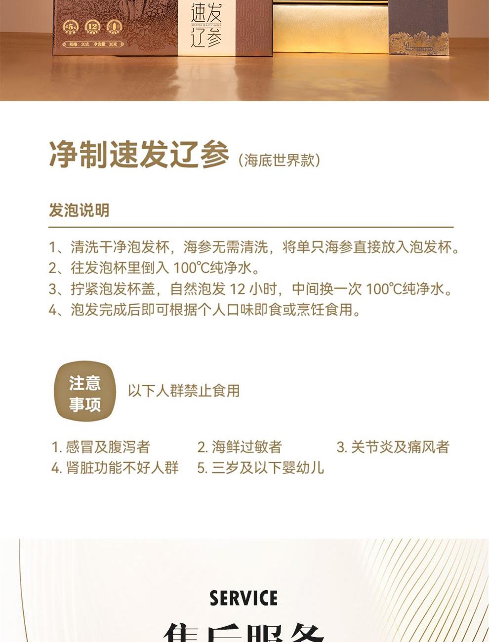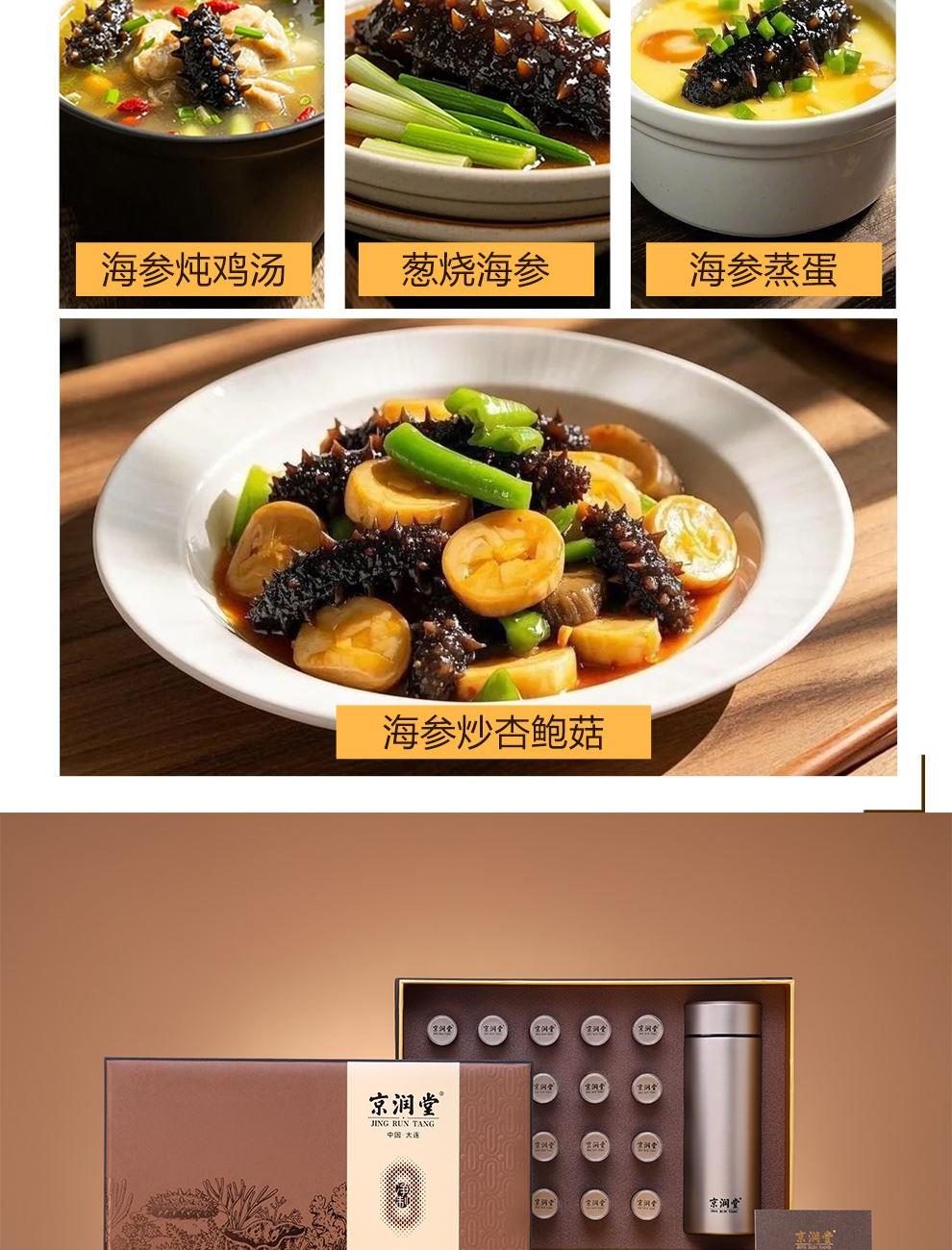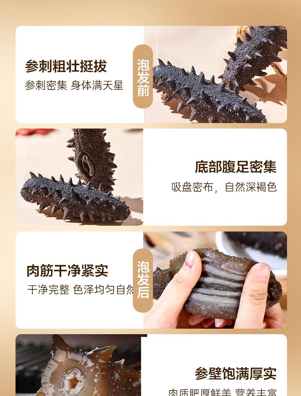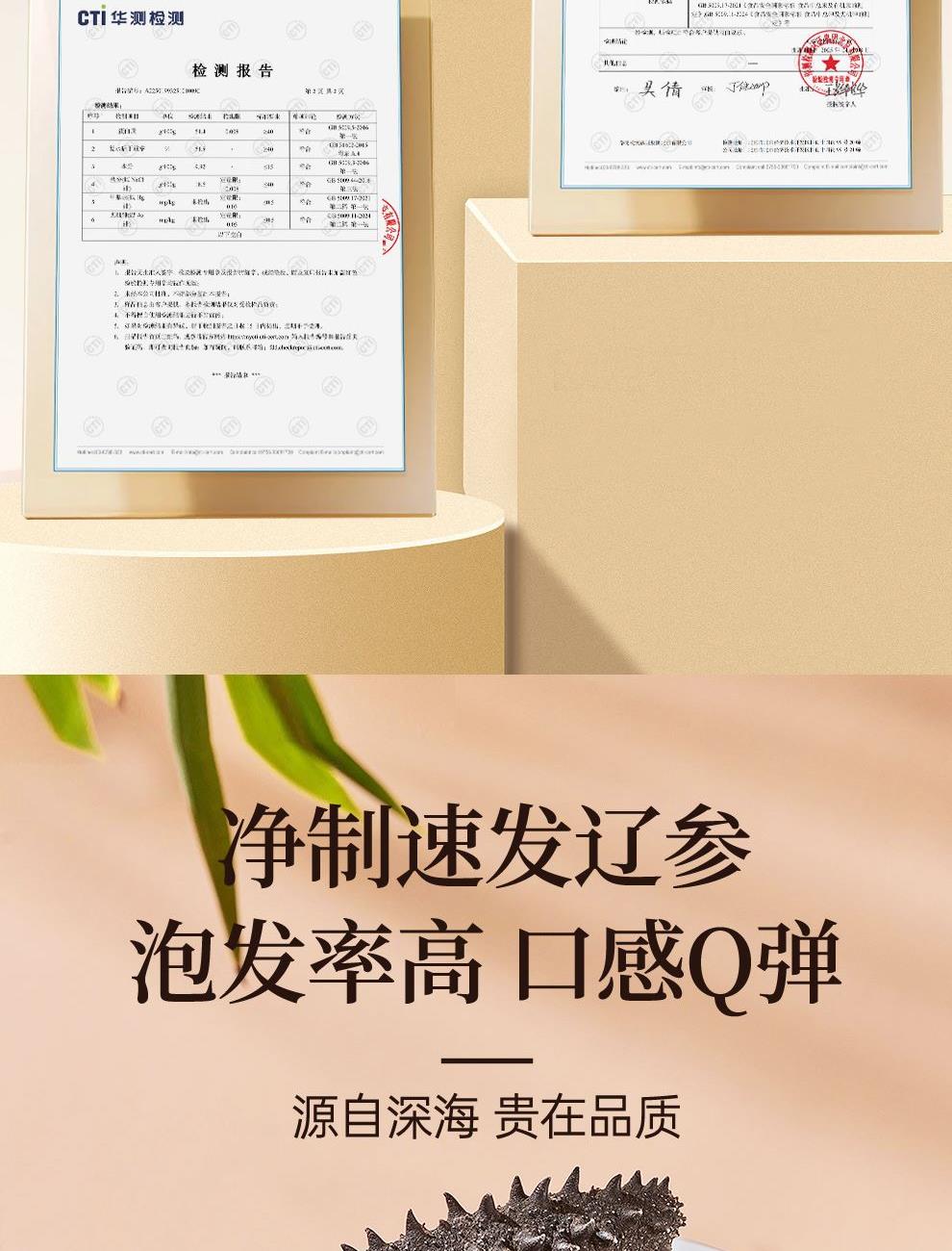 规格:20支/盒、赠送:保温杯 卖点: 1、北纬39°,大连海参黄金生长海域,底播散养。 2、快速便捷,12小时泡发,轻松即食。 3、含盐量≤5%,高血脂人群的更佳选择。 4、速发工艺,营养成分完整保留,海参品质更加稳定。 5、泡发率20倍,口感Q弹有嚼劲。