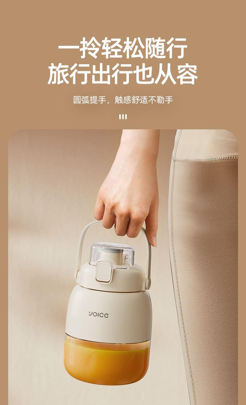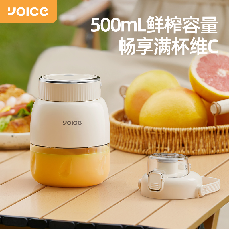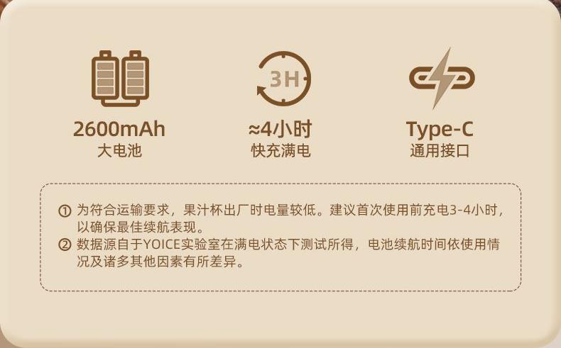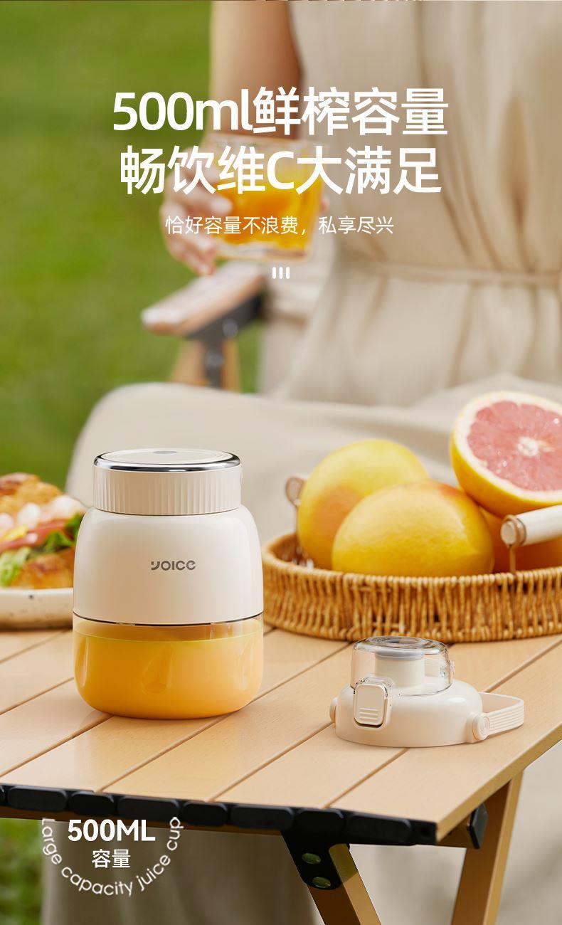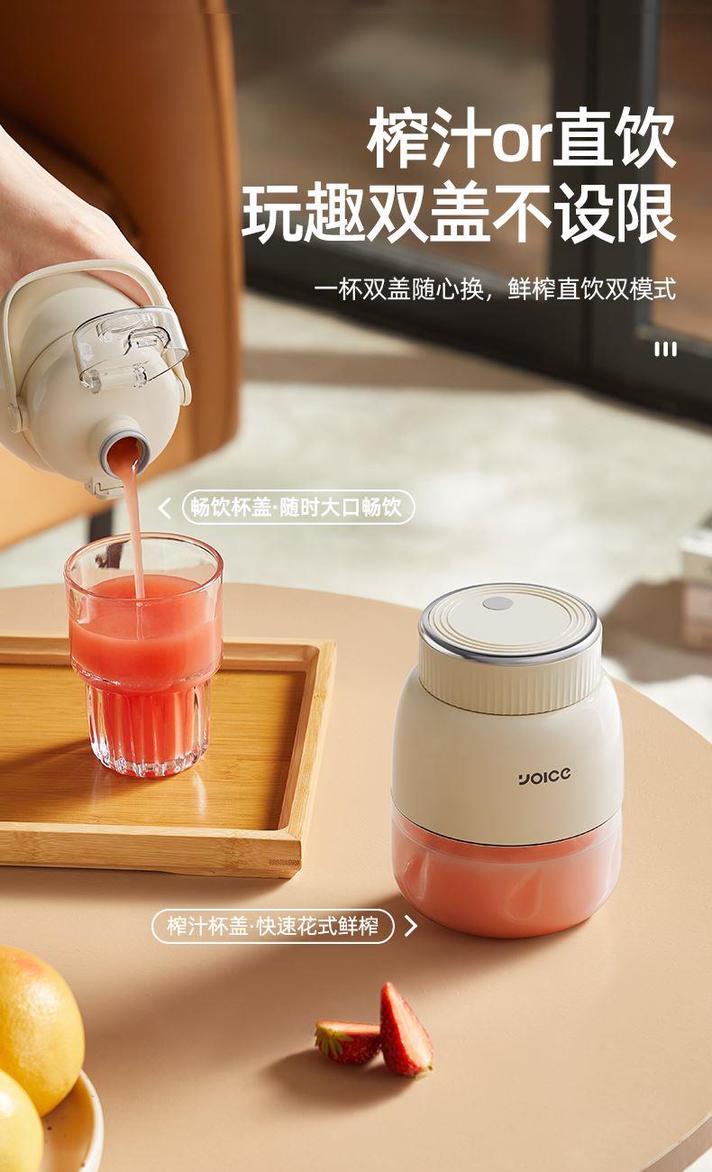 1.无线便携、轻松随行 2.2600mAh电池超长续航、动力持久 3.500ml鲜榨大容量 4.双盖设计、灵活百搭 5.304不锈钢刀刃 主要材质:PP+PC+304不锈钢 功率:70W 电池容量:2600mAh 容量:500ML 颜色:亚米白