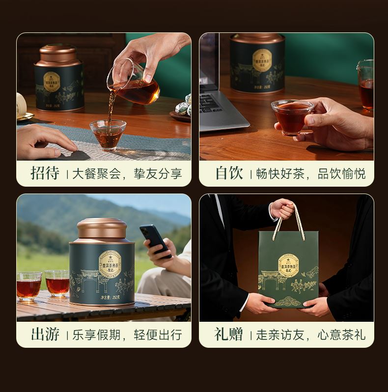 华祥苑-云南易武10年陈龙珠252g普洱熟茶叶商务礼赠品套装