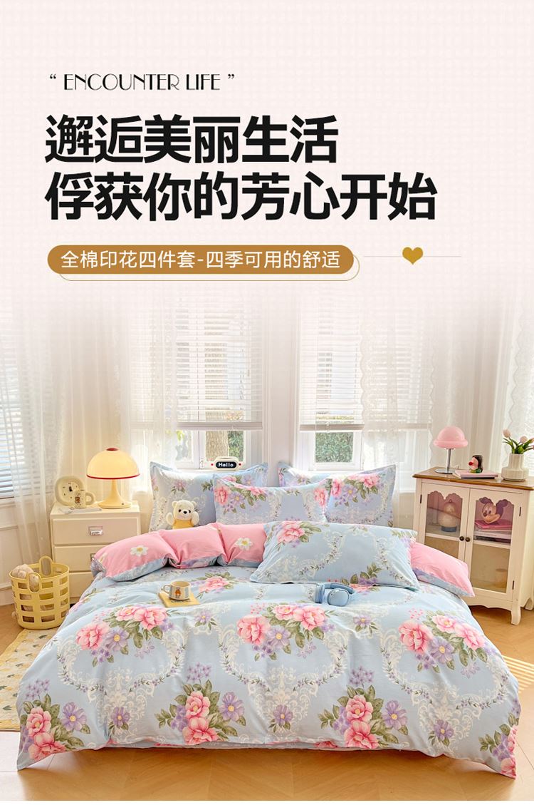 洁丽雅纯棉四件套床上用品被套200*230cm-花叶倾城