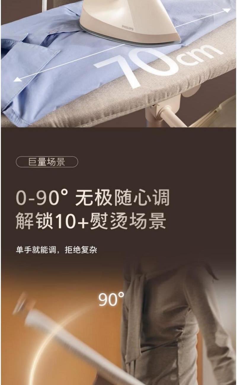 1、260千帕微压,87克/分钟增强蒸汽喷射 2、70厘米多重可调节熨衣板 3、3档设置可护理您的所有衣物 4、NTC温控可保护精致衣物 5、独特的可旋转式熨烫头支架 6、1.8升分离式大容量水箱 7、熨衣板增大20%,可一次熨烫更大面积,令熨烫方便、快捷 8、去除99.9%以上的细菌和螨虫
