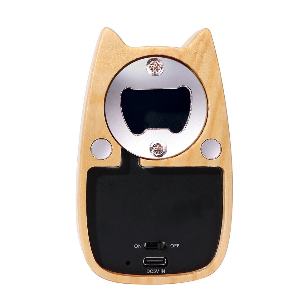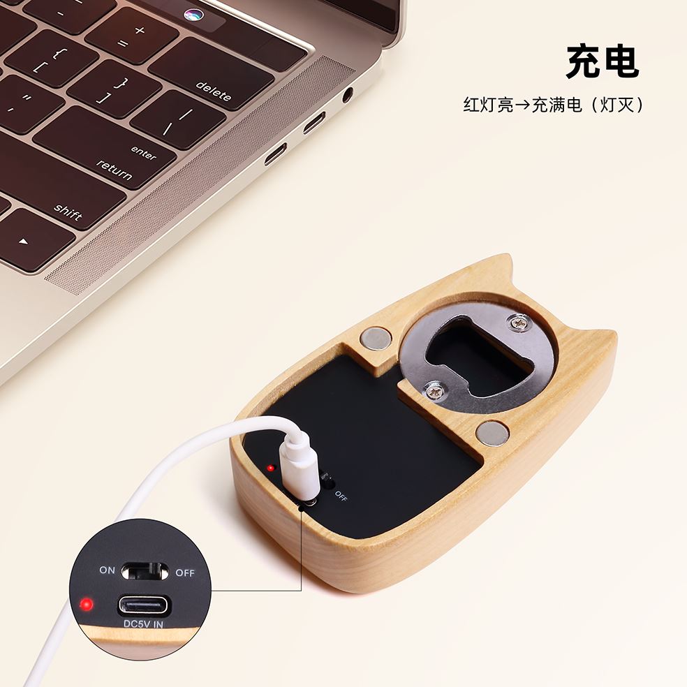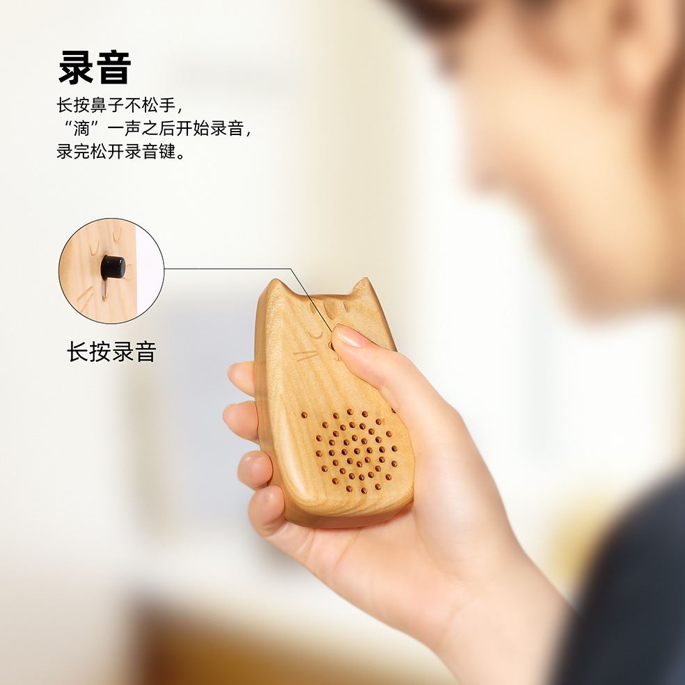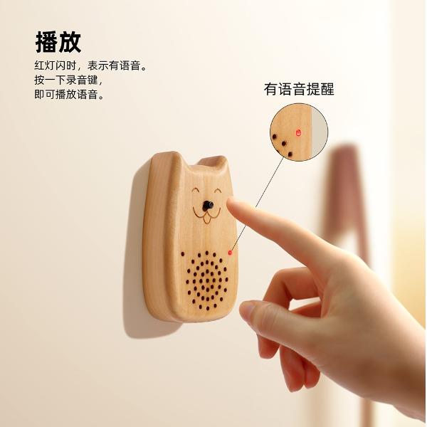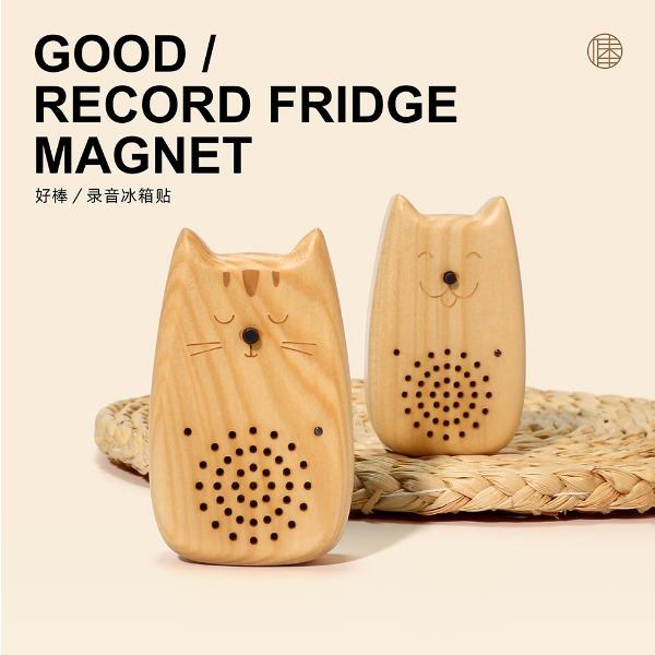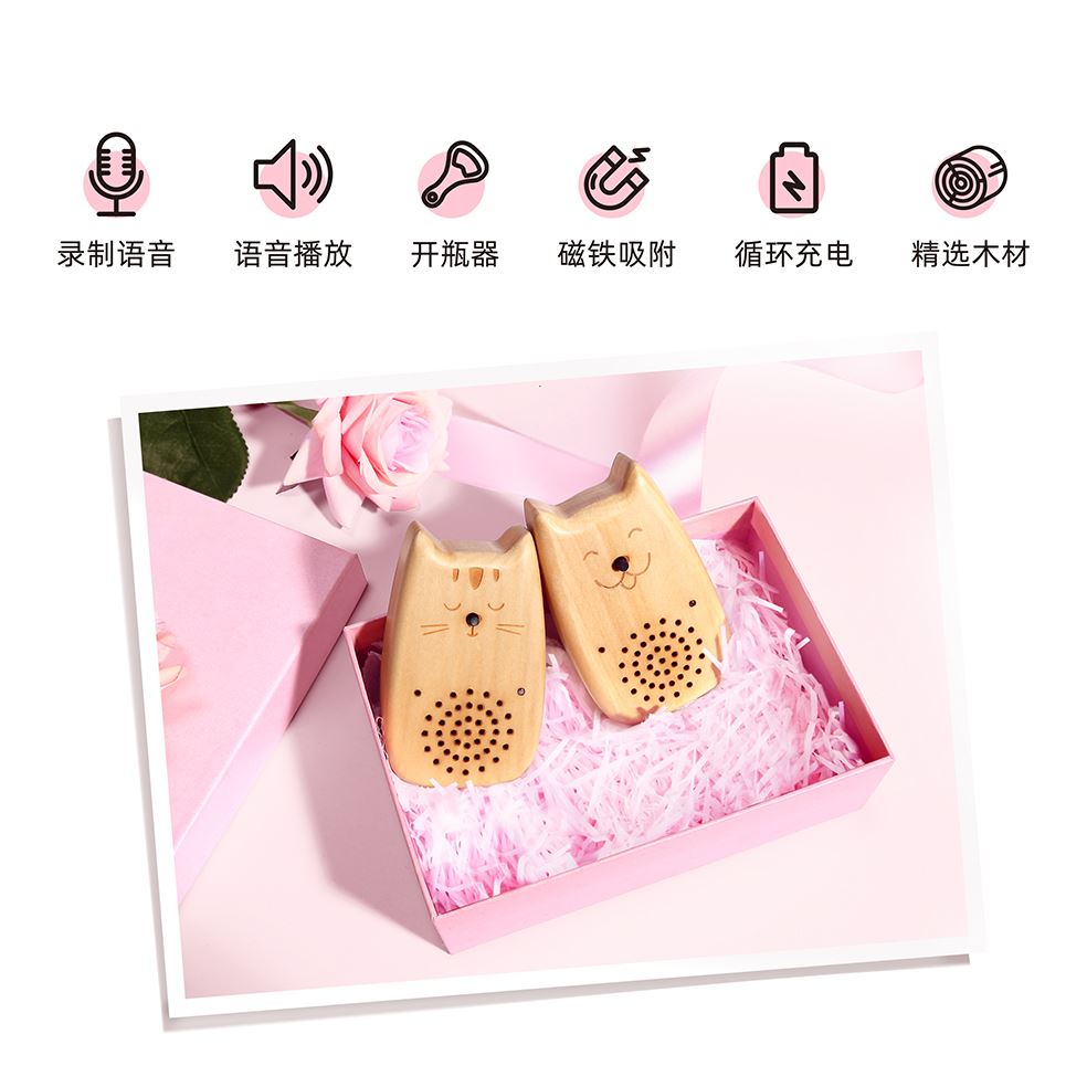录音冰箱贴 产品型号:NO-HB071猫 NO-HB072狗 额定功率:约3W 额定电压:DC5V1A 录音时长:约55秒 产品材质:实木、金属 产品标配:录音冰箱贴*1、充电线*1 产品尺寸:59*23*98mm 包装尺寸:65*30*115mm 产品毛重:约100g 电池容量:300mAh 锂电池