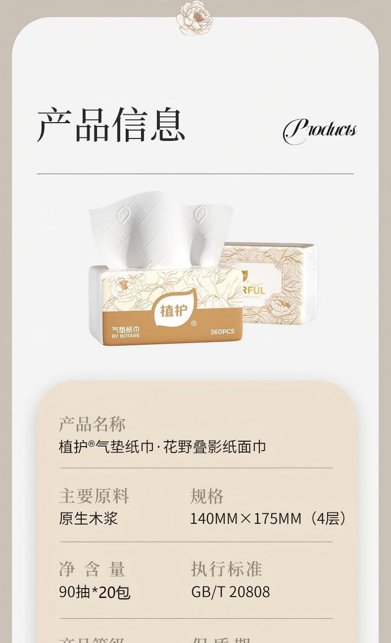 植护花野叠影气垫抽纸140*175mm/4层90抽20包/箱