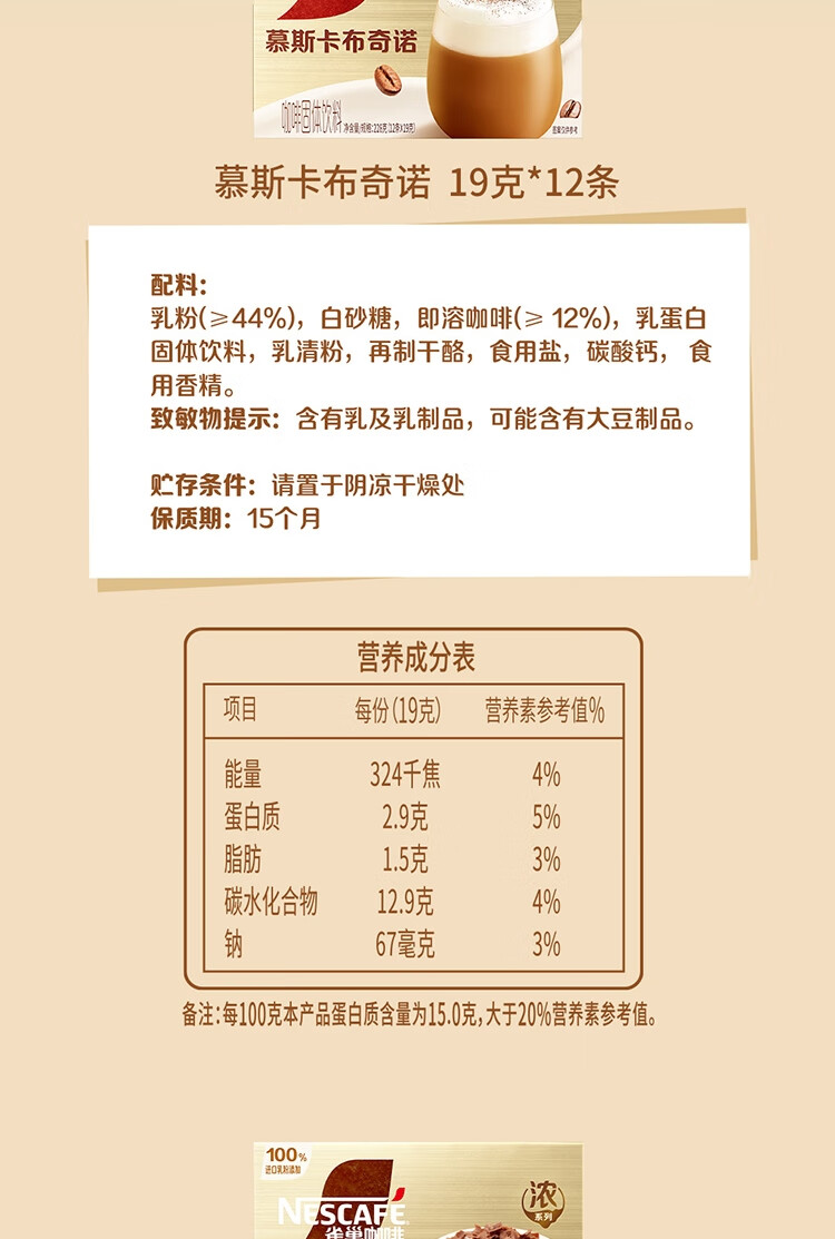 雀巢速溶咖啡馆藏系列厚乳丝滑拿铁12条*19克盒装