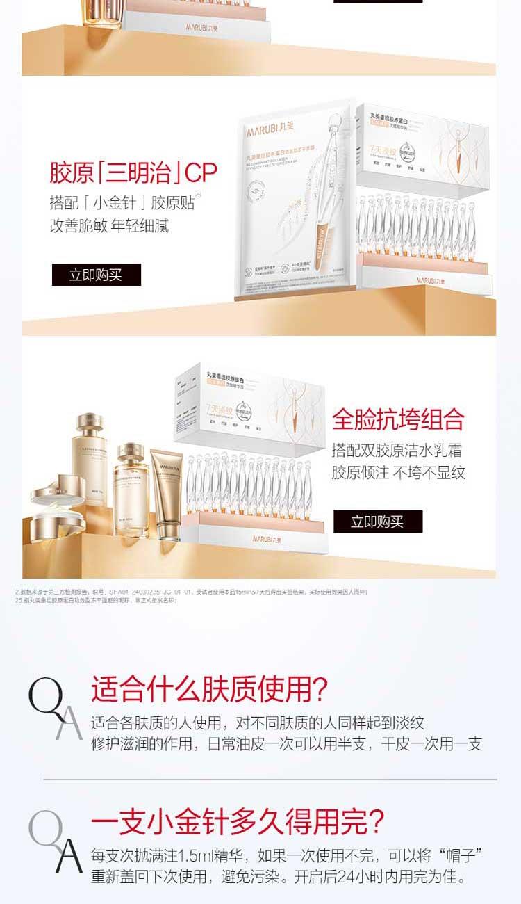 规格:丸美重组胶原蛋白抗皱修护次抛精华液1.5mlx30+赠品1.5mlx5(电商2.0版)*2 卖点:1次抛红敏 7天抛细纹