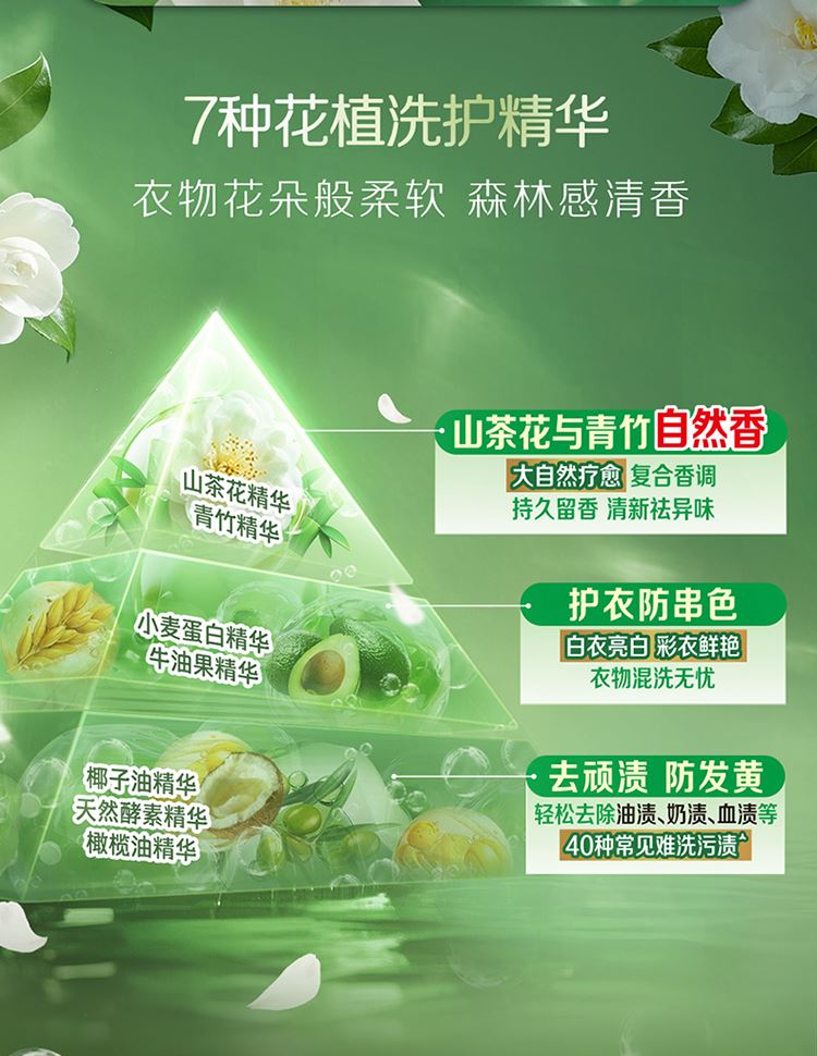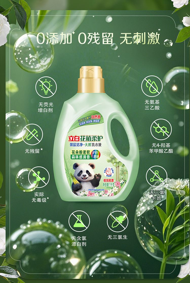 保质期限:3年 主要成分:表面活性剂、防串色剂、抗再沉积剂、着色剂、香精、防腐剂、柔软因子、天然来源成分(天然椰子油精华、棕榈油精华、天然酵素、烷基糖苷APG、山茶花精粹、牛油果提取物、柠檬香茅提取物) 产品功效:洁净更柔软 防发黄变 适用范围:棉麻混纺、内衣内裤、宝宝衣物、孕妇衣物