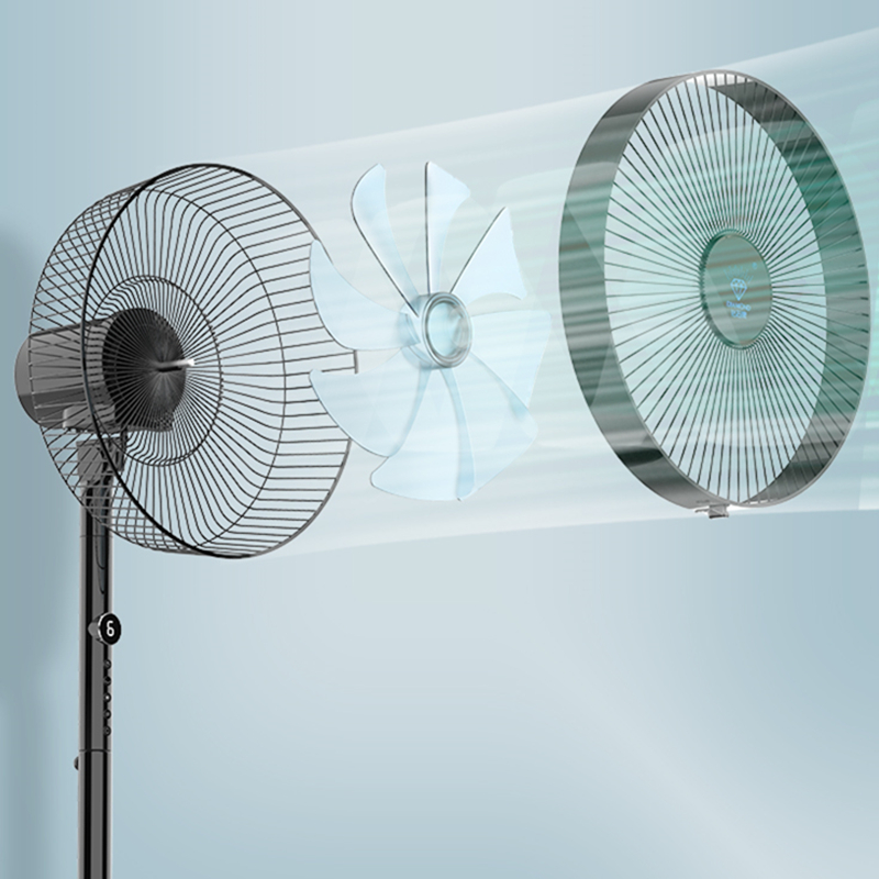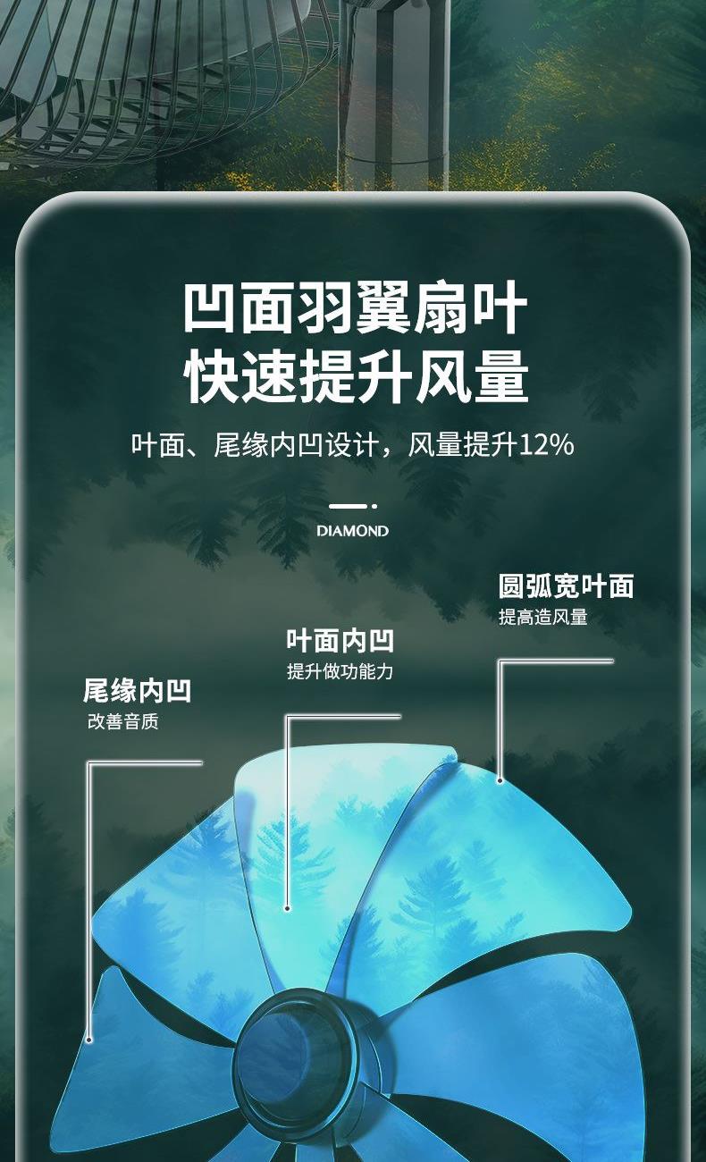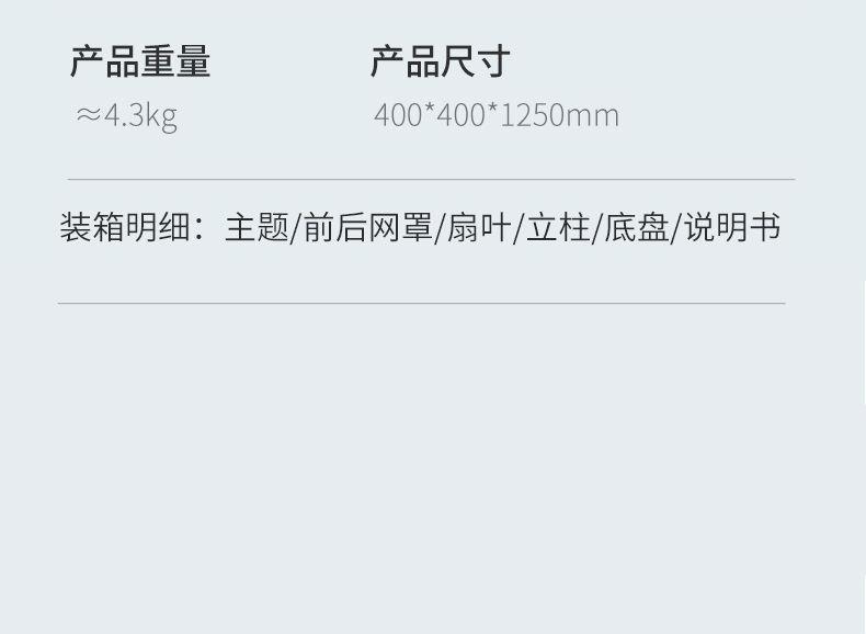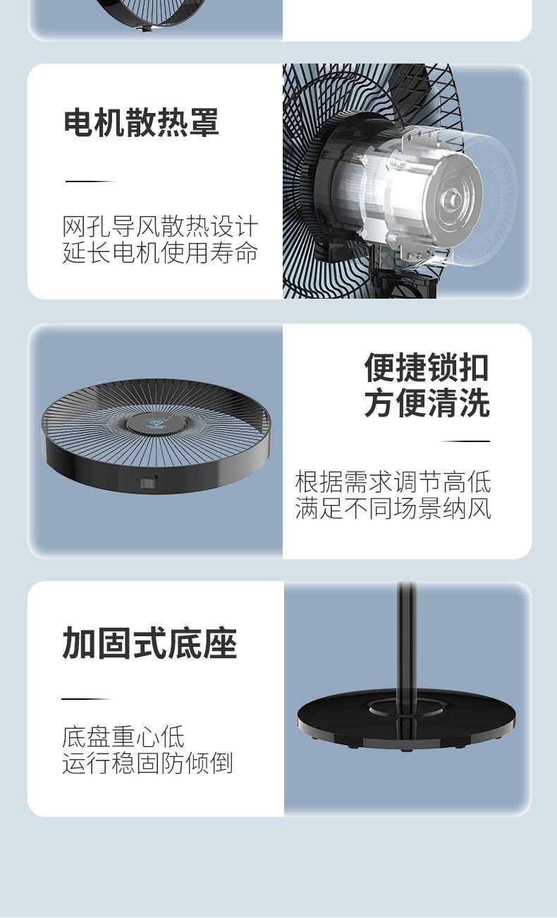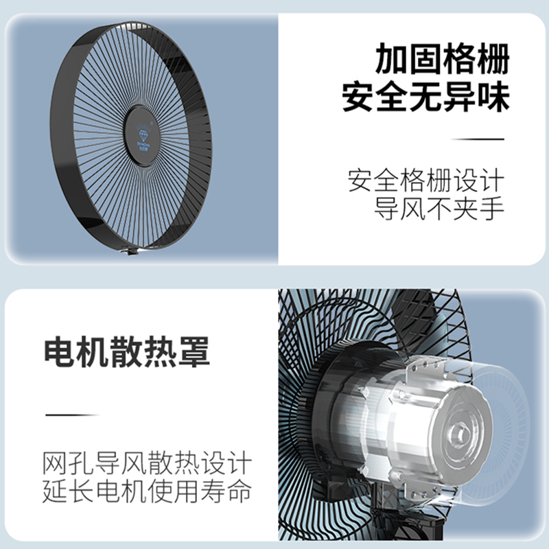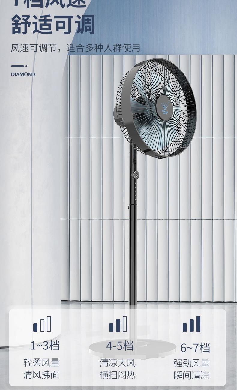 产品参数 网罩尺寸:35cm 风力档位:8挡 卡扣方式:网边自扣式 能效等级:新标二级能效 功率:40W 净重:4.5kg 毛重:5kg 纸箱:490*180*425mm 材质:8片PP风叶+外壳塑料配件ABS+7518电机 卖点: 1、7档调速,舒适可调。遥控开启关闭,0-9定时遥控, 2、高品质轴承电机,轻音运行且省电,一键睡眠/自然风设定; 3、8叶风叶,凹面羽翼扇叶,快速提升风量; 2、左右自动摇头85度,仰俯手动调节60度; 3、双重螺旋加速网罩宽8mm宽度,不用担心儿童打手; 4、便捷网罩锁扣,清洗如此简单。