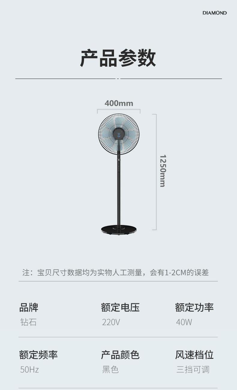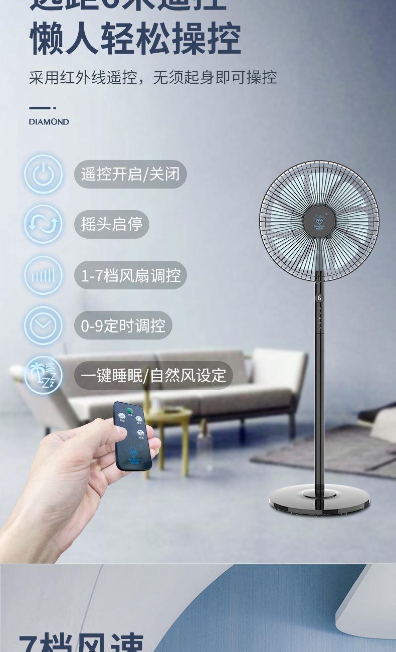 • 钻石牌14寸遥控款落地扇CY35-R3黑色