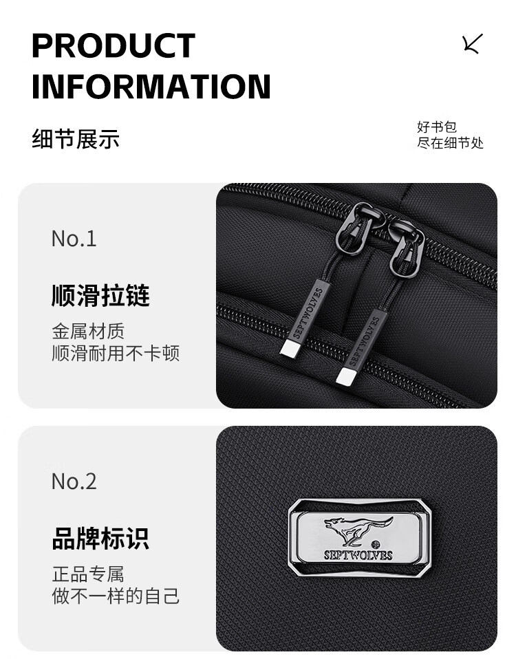 七匹狼新款双肩包大容量休闲商务通勤轻便CD141635-1