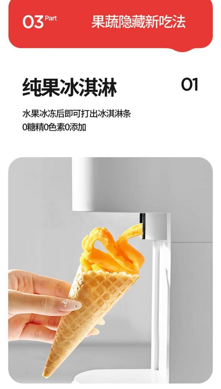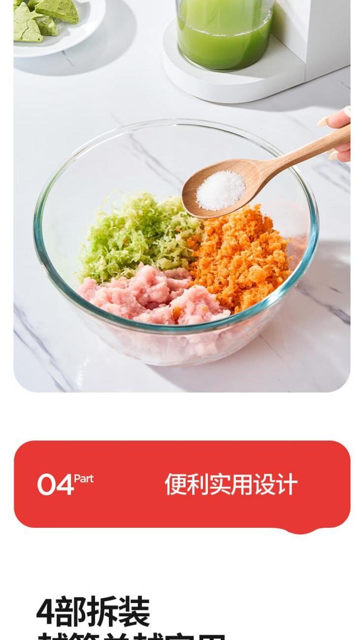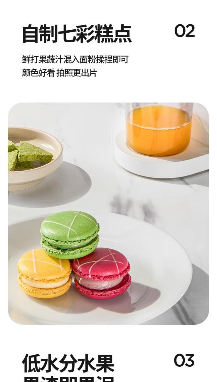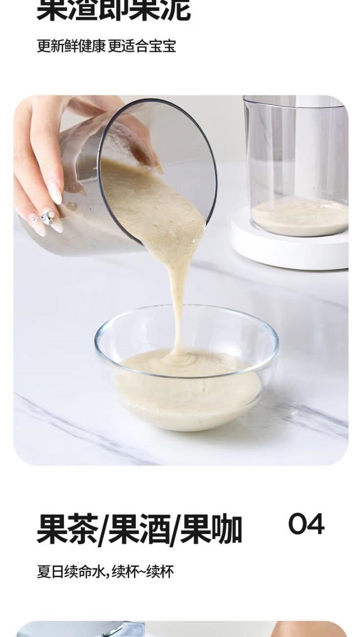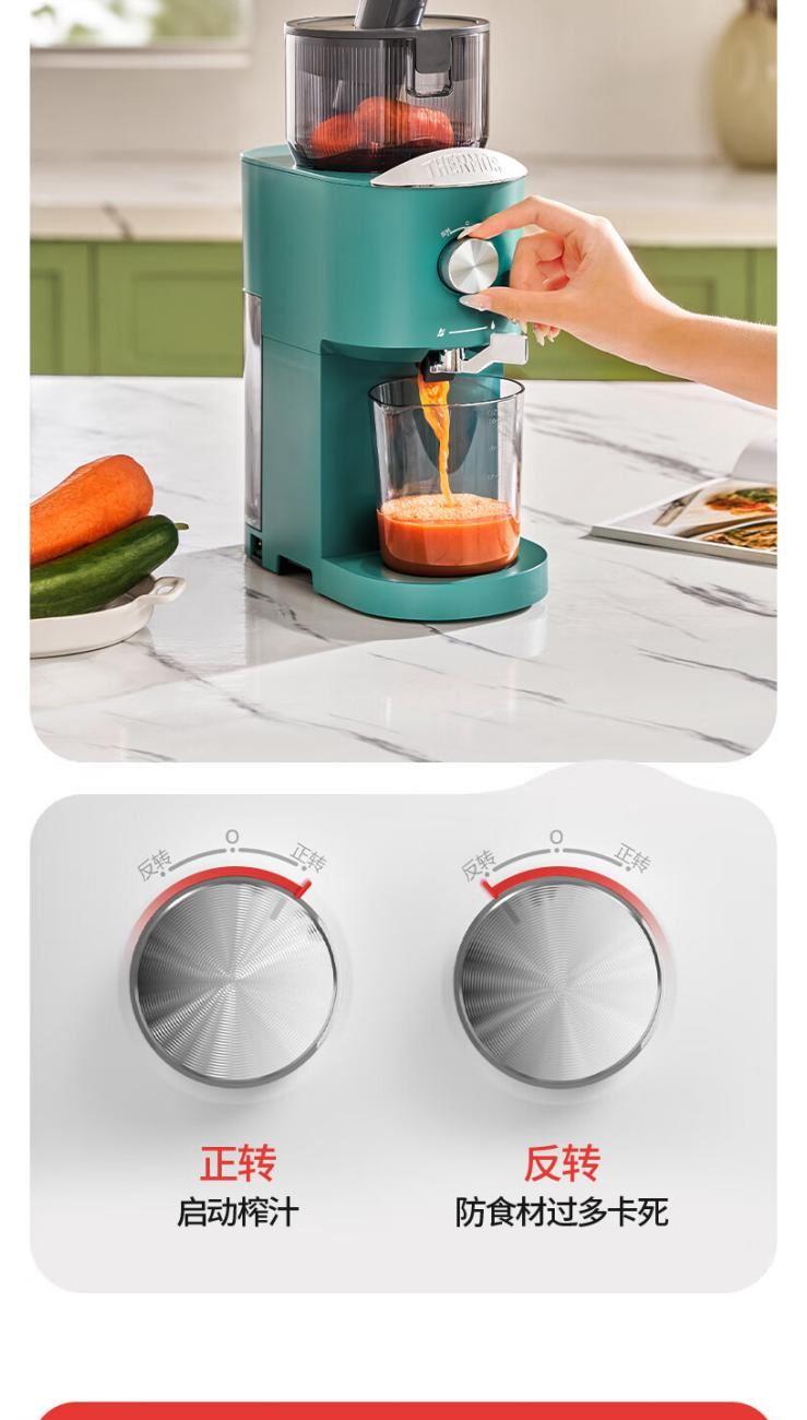 额定电源 :220V~50Hz 额定功率 :100W 接汁杯容量:1.5L 接渣桶容量:0.9L 净 重 : 2.8kg 产品尺寸 :275mmx140mm x383mm (含推进杆) 多功能:一机多用,蔬果汁、豆浆、辅食、厨房佐料、水果冰淇淋等一机搞定! 安全&健康:无刀片低温慢速压榨,使用安全,减少破坏纤维和VC更健康; 榨汁方便:130mm升级大口径,外部下锁式螺旋,进料面积大,果蔬免切混合一次榨,不用老投料,食材易搅打不打转,连皮都能榨; 清洁优势:结构简单,5秒拆装清洗方便,主机创新干湿分离设计,主机免洗更耐用; 细腻无渣:微孔过滤隔渣,汁渣分离,果汁细腻口感好,孩子喜欢,家长放心; 材质安全:食品级材质,接触各种酸碱食材都能放心; 技术优势:直流电机,动力强劲,耐用不卡机,西芹整根榨,更抗造更降噪; 贴心设计:防卡机感应、自动反转设计、榨汁无需看管更省心。