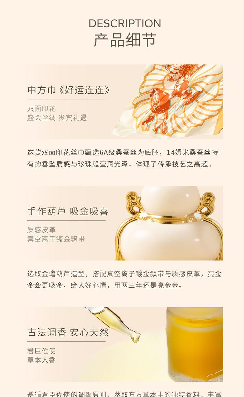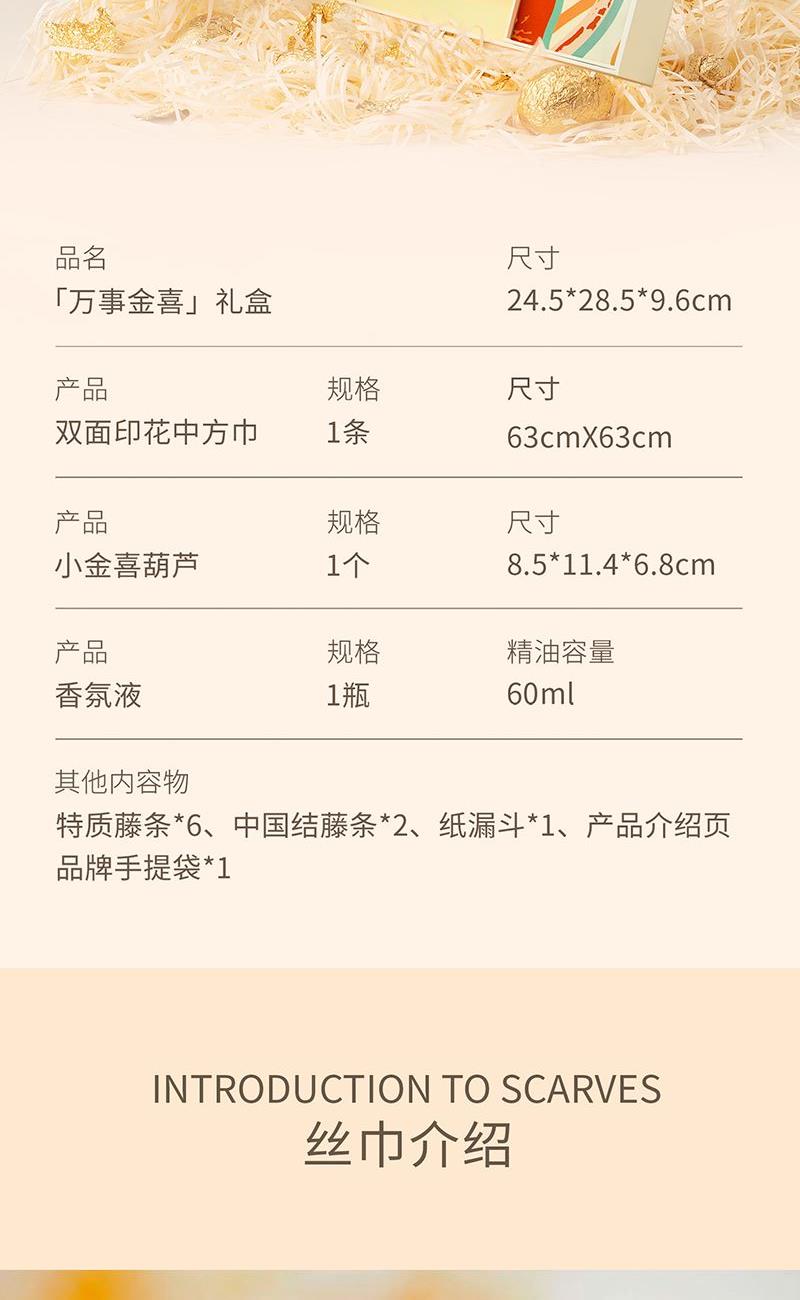 《万事金喜》丝巾香氛礼盒(尊享版) CWMA09067122 [内含] 双面印花中方巾×1 小金喜·东方葫芦香薰×1 包装盒尺寸:300mm×230mm×87mm 手拎袋尺寸:310mm×260mm×100mm