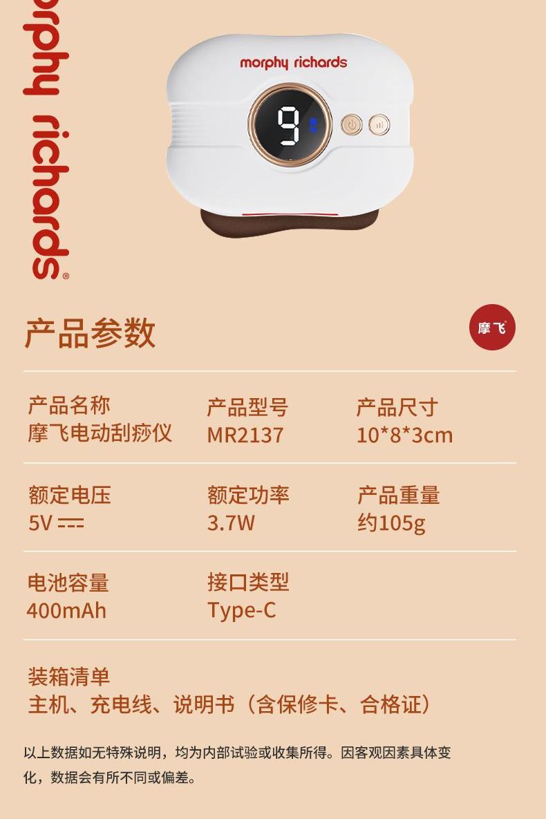 型号 MR2137 净重 99g 毛重 265g 包装尺寸 16X14X4cm 大箱尺寸 46x33x39.5cm 续航: ≈50min 充电时间:2.5小时±0.5小时 充电电压:5V1A 额定功率:5w 工作电压:3.7V 充电接口:USB 电池容量:400毫安 执行标准:GB4706.1-2005/GB4706.10-2008 配件:主机*1,精油*1,充电线*1
