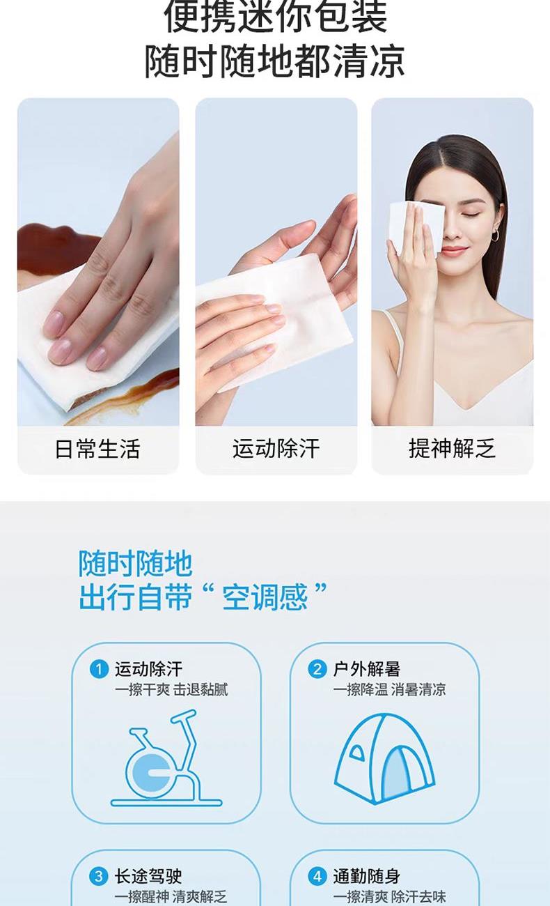产品特点:超柔加厚无纺布,清凉因子降低温度清新舒爽,不惧夏日;擦走汗味油腻,便携亲肤