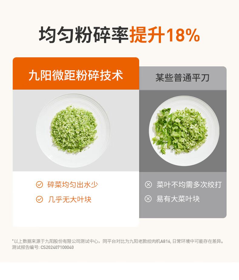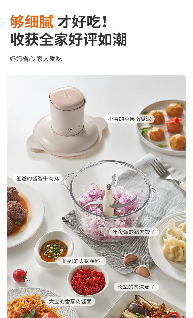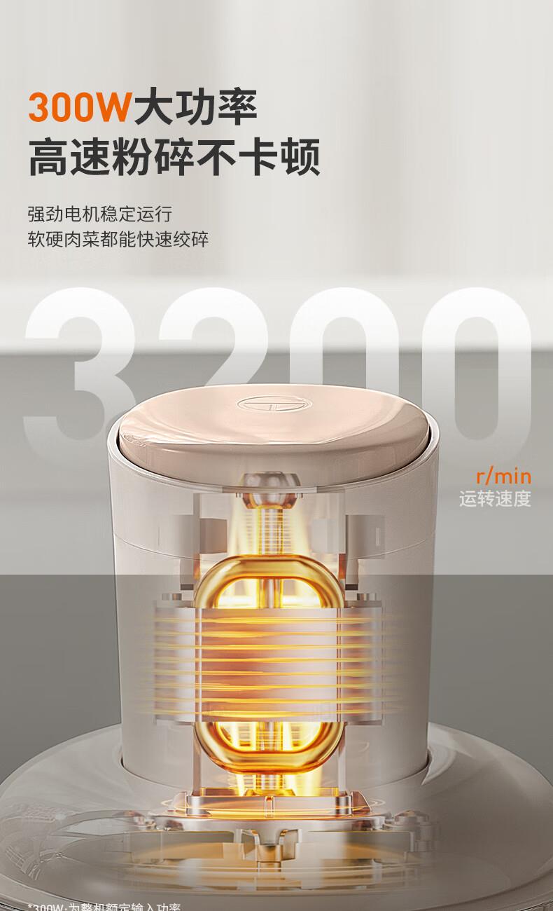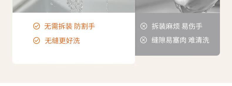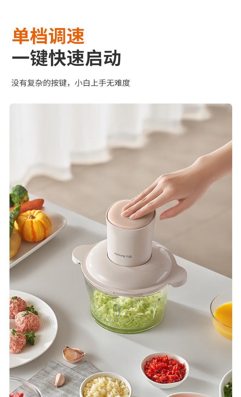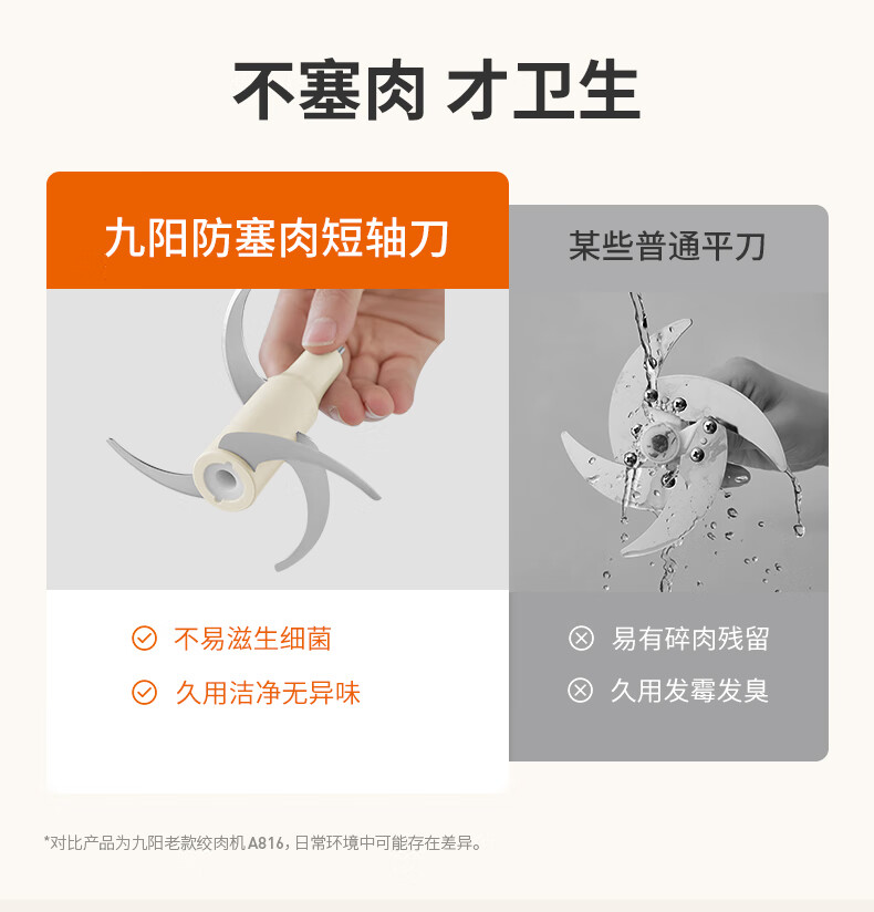 1、微距粉碎折弯刀,贴壁贴底食材绞打均匀不结块; 2、更好洗:底部短轴&无弹簧刀轴,防止塞肉更好清洗; 3、更贴心:1.8L玻璃杯,一次绞打1斤肉(效果较好); 4、好操作:单档调速,一键轻松操作。