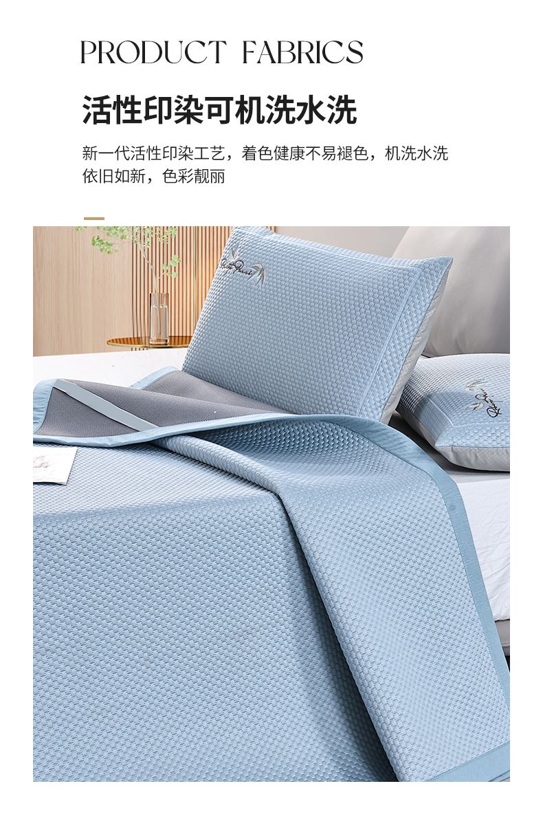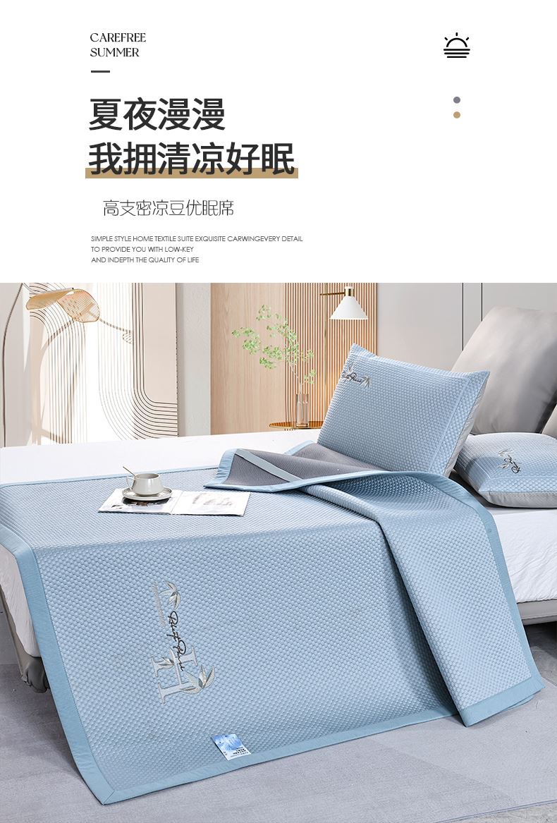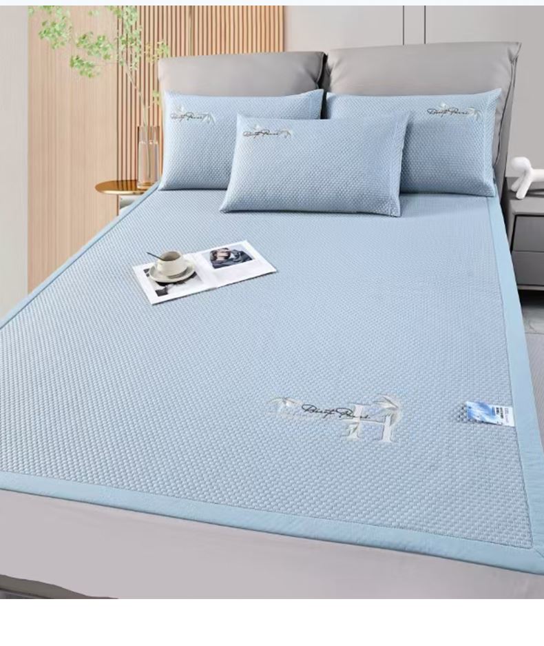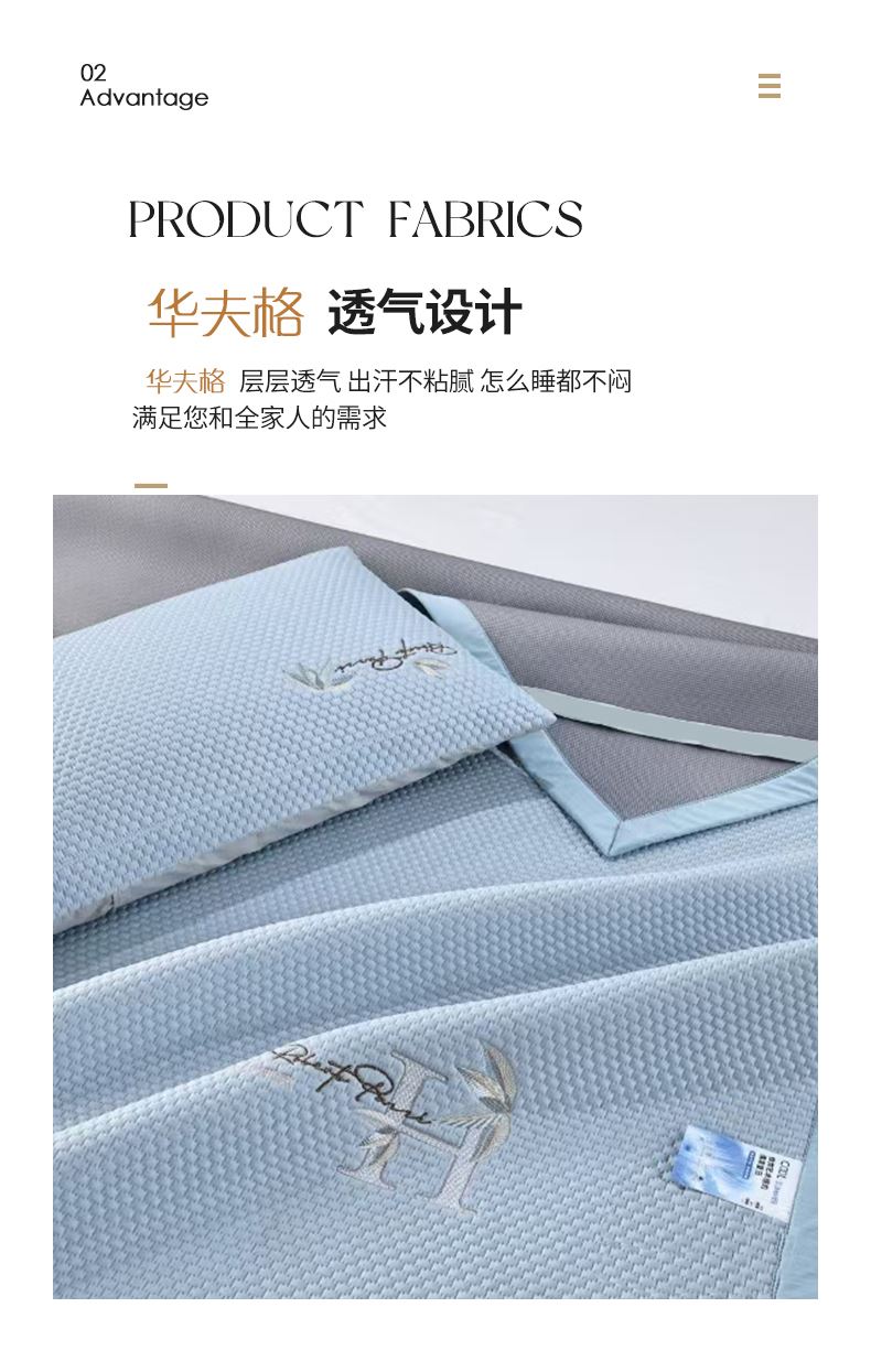 规格:180*200cm 枕套:48*74cm*2 面料:凉豆豆 复合料:华夫格 执行标准:Q/TXY01-2016 安全类别:GB18401-2010 B类 1.凉感豆按摩颗粒,微微凸起,QQ弹,让身体和席面预留更多,自由呼吸的空间 并且软到措手不及。黑科技凉感丝降温纤维、清凉透气,体感降温,杜绝出汗,无惧机洗,高密织,水洗不易变形