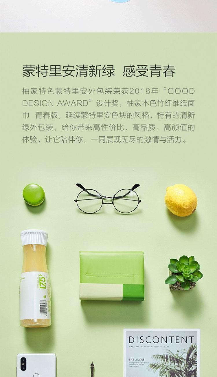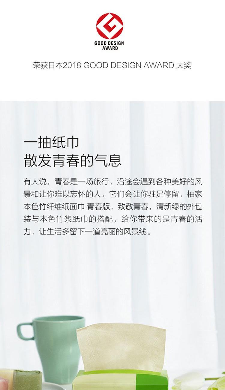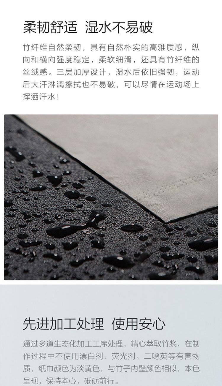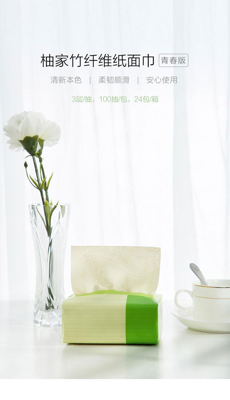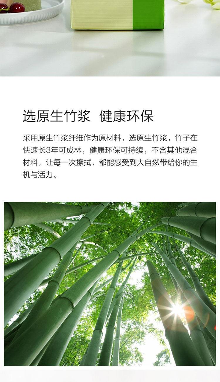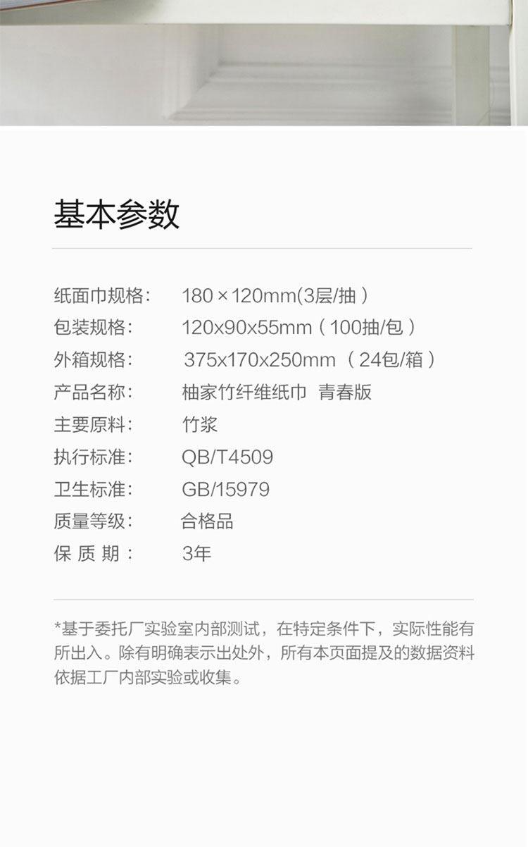 产品货号:19658 纸面规格:180*120mm(3层/抽) 单包规格:120*90*55mm(100抽/包) 外箱尺寸:370*170*250mm 主要原料:原生竹浆 保 质 期:3年